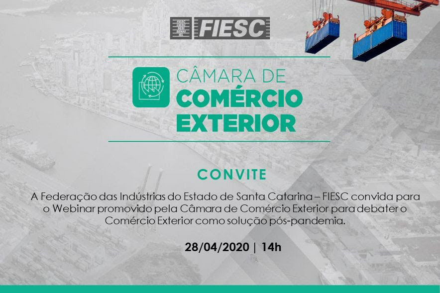 Florianópolis, 28.4.2020 – Nesta terça-feira, dia 28 de abril, às 14 horas, a Câmara de Comércio Exterior da FIESC realiza webinar para debater o comércio exterior como solução pós-pandemia. Participam do encontro o presidente da FIESC, Mario Cezar de Aguiar, o diretor de desenvolvimento industrial da CNI, Carlos Abijaodi, o gerente de negociações internacionais da CNI, Fabrizio Sardelli Panzini, e a presidente da Câmara, Maria Teresa Bustamante. Entre os assuntos que serão debatidos estão o cenário atualizado de negociações dos acordos comerciais, estudo sobre impactos da saída do Brasil do Mercosul, investigações dumping e importações draw-back/dumping. INSCREVA-SE AQUI.