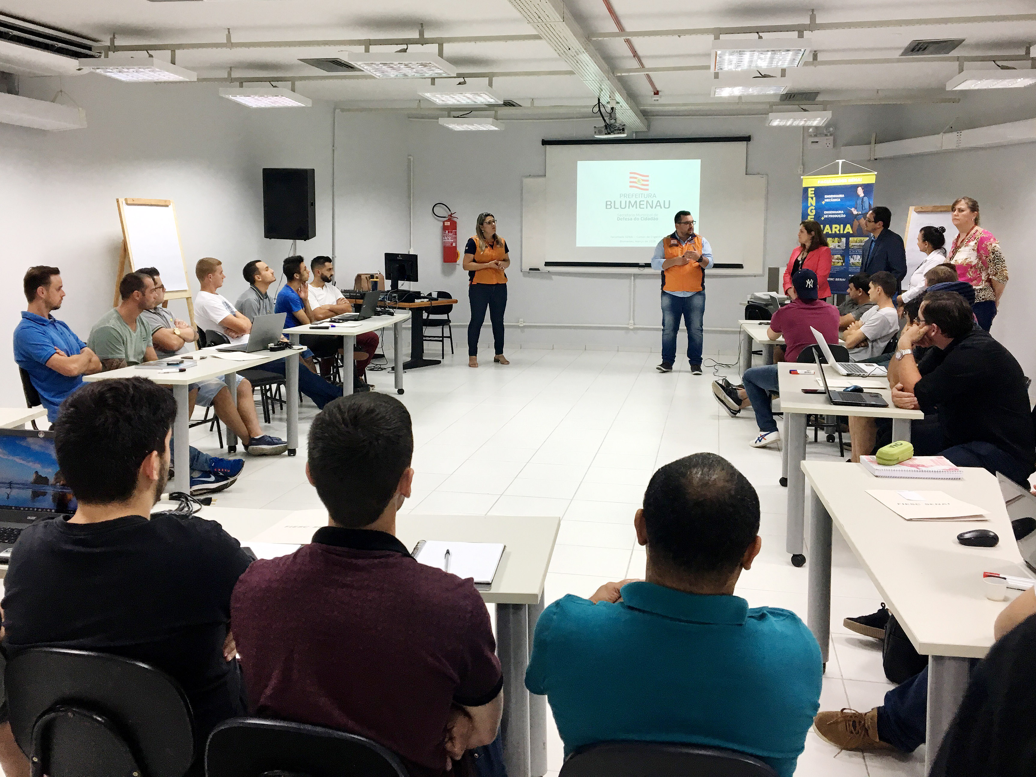 Florianópolis, 04.5.2018 – Estudantes do curso de Engenharia Mecânica do SENAI em Blumenau realizam, neste sábado, dia 5, visita técnica orientada a três diques de contenção de ribeirões instalados no município (nos bairros Fortaleza, Vila Nova e Santa Ephigênia). Com supervisão da Defesa Civil e dos docentes do curso, a saída a campo tem o propósito de levantar informações para projetos que os estudantes estão desenvolvendo, como forma de aplicar na prática os conteúdos das aulas. Após visita deste sábado, as equipes elaborarão os projetos ao longo do semestre e a apresentação final será realizada nos dias 27 e 28 de junho, e as propostas com potencial de execução serão apresentadas no seminário técnico no "Julho Laranja - mês de prevenção a desastres naturais", promovido pela Prefeitura. As Faculdades de Tecnologia do SENAI/SC iniciaram cursos de engenharia em 2018, com turmas também em Joinville e em Jaraguá do Sul.