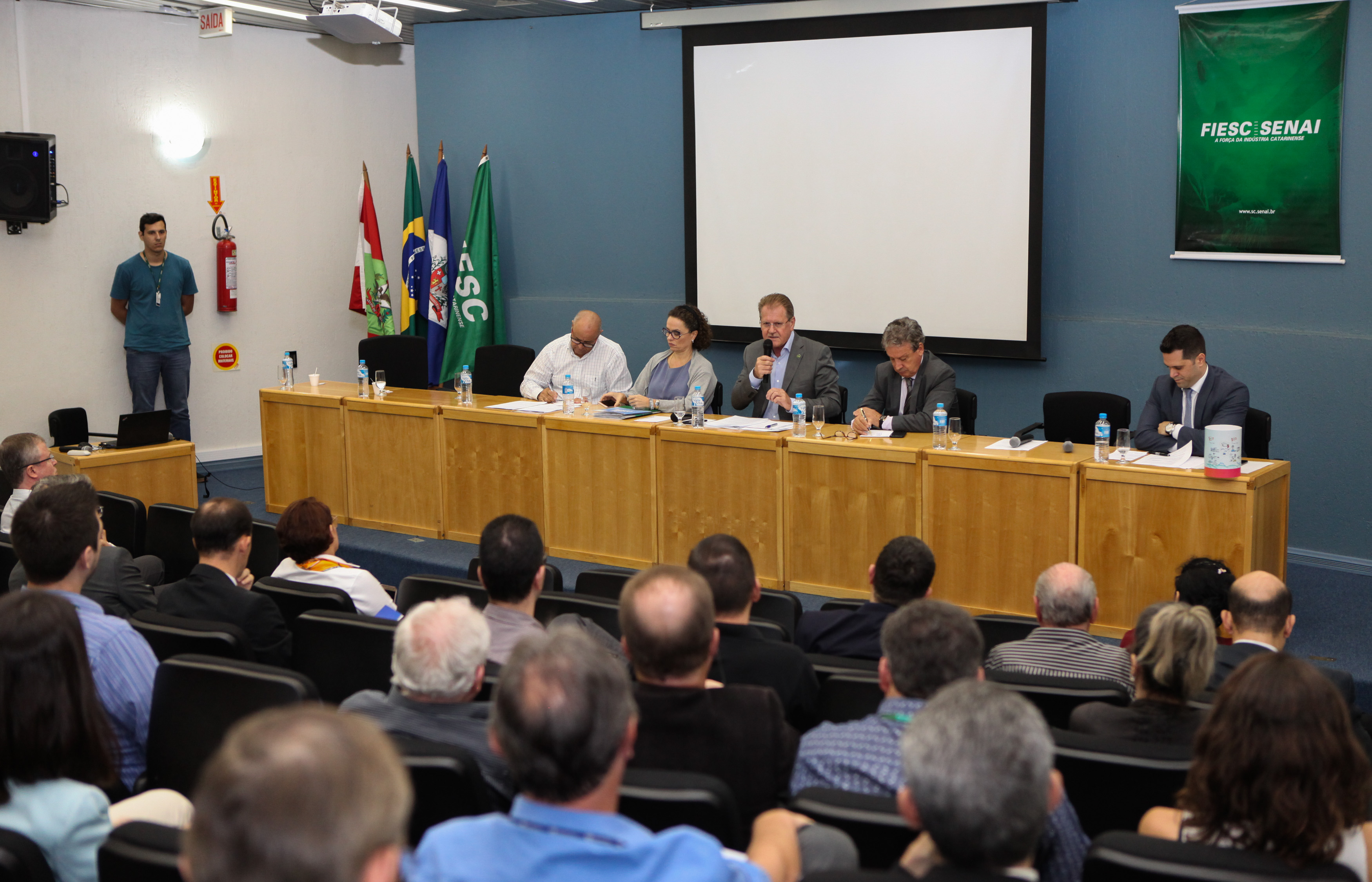 Joinville, 3.5.2018 – Lideranças industriais participaram na manhã desta quinta-feira (3) de reunião da Câmara de Assuntos Tributários e Legislativos da Federação das Indústrias de Santa Catarina (FIESC), no SENAI Norte, em Joinville. Um dos principais assuntos da pauta foi o acordo negociado na quarta-feira (2) entre FIESC, Federação do Comércio (Fecomércio) e Secretaria da Fazenda, prevendo que o segmento têxtil será excluído dos efeitos da Medida Provisória 220, que mudou o ICMS para a indústria. Saiba mais clicando aqui.