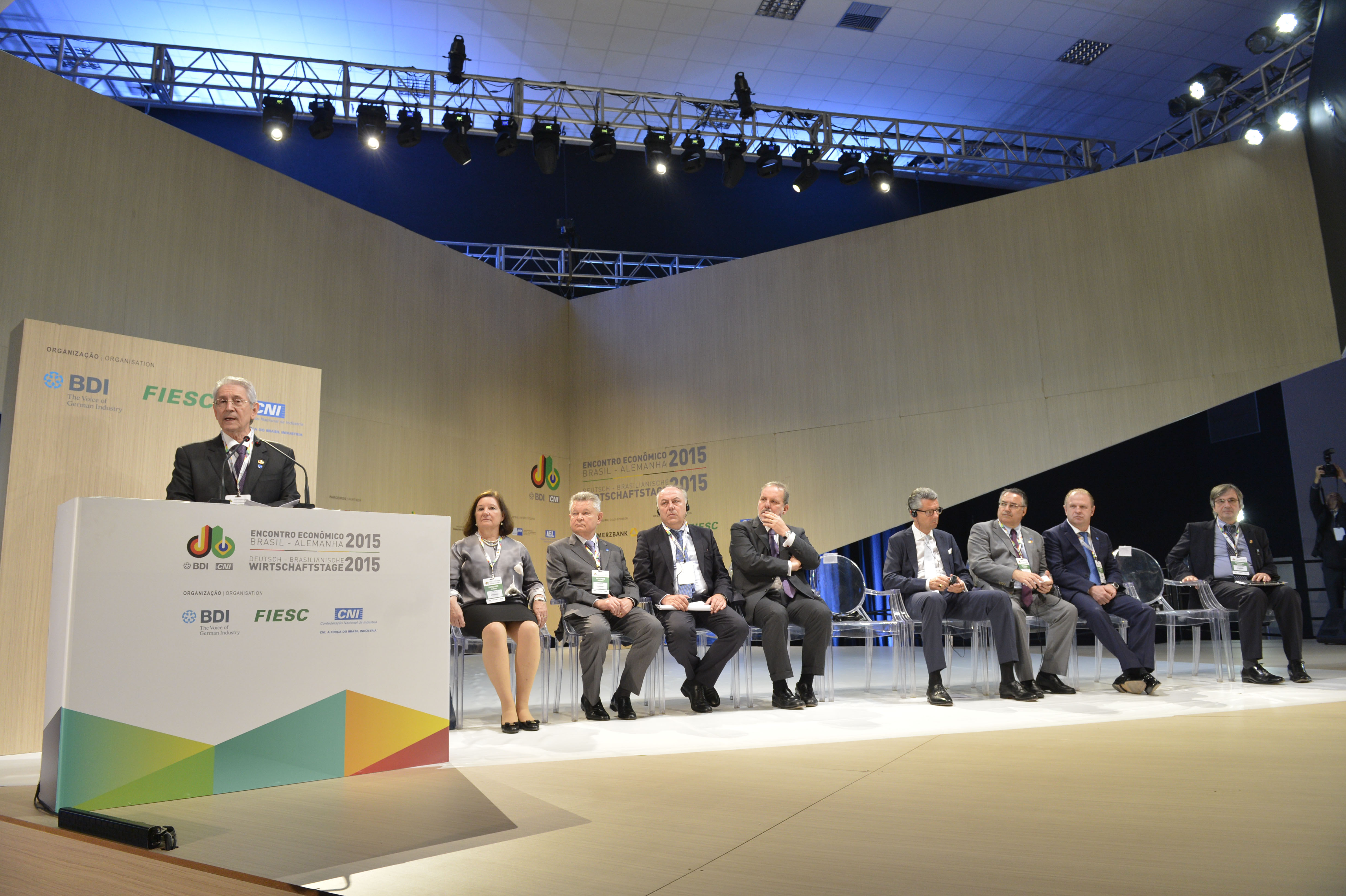 Joinville, 21.9.2015 – A defesa do setor produtivo como essencial para a retomada do crescimento econômico permeou os discursos de abertura do 33º Encontro Econômico Brasil-Alemanha, nesta segunda-feira (21), em Joinville. Organizado pela Confederação Nacional da Indústria (CNI) e sua congênere alemã Bundesverband der Deutchen Industrie (BDI), o encontro é realizado anualmente desde 1982 de forma alternada, sendo um ano no Brasil e outro na Alemanha.