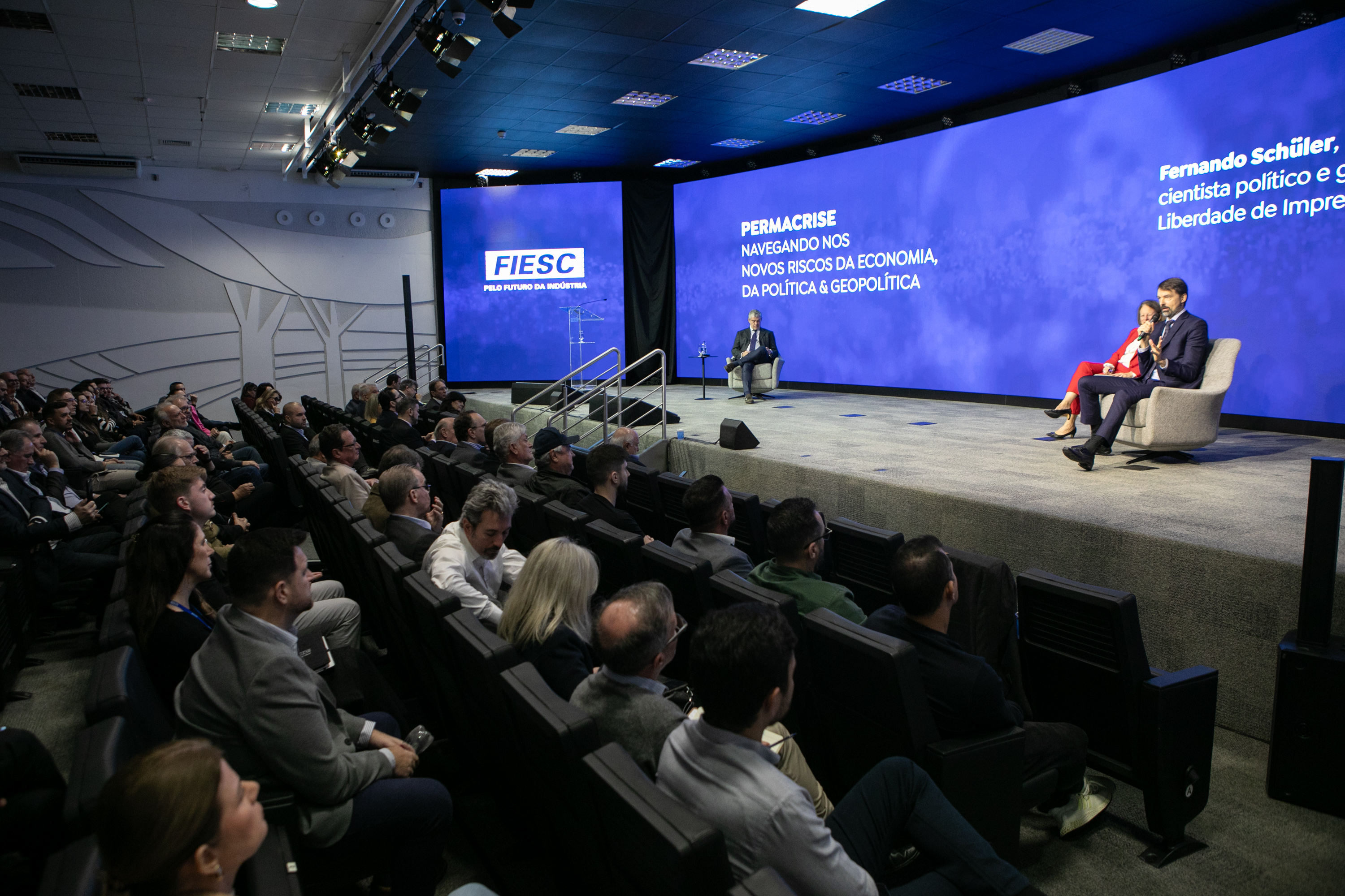 Florianópolis, 05.06.24 - Em um cenário de incertezas e instabilidades globais duradouras, em que crises se acumulam e se sobrepõem, como o Brasil pode minimizar os impactos desses desafios? A resposta é complexa, mas o consenso entre especialistas presentes em evento na Federação das Indústrias de SC (FIESC), nesta quarta-feira, dia 5, é de que sem equilíbrio fiscal, tributação justa e sem otimizar e melhorar a gestão pública, o país pode perder oportunidades relevantes que se configuram nesse momento de “permacrise”.