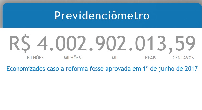 Os números são do Previdenciômetro, ferramenta criada pela Confederação Nacional da Indústria (CNI), que é atualizada a cada segundo e mostra ao país a importância das mudança nas regras para aposentadoria.