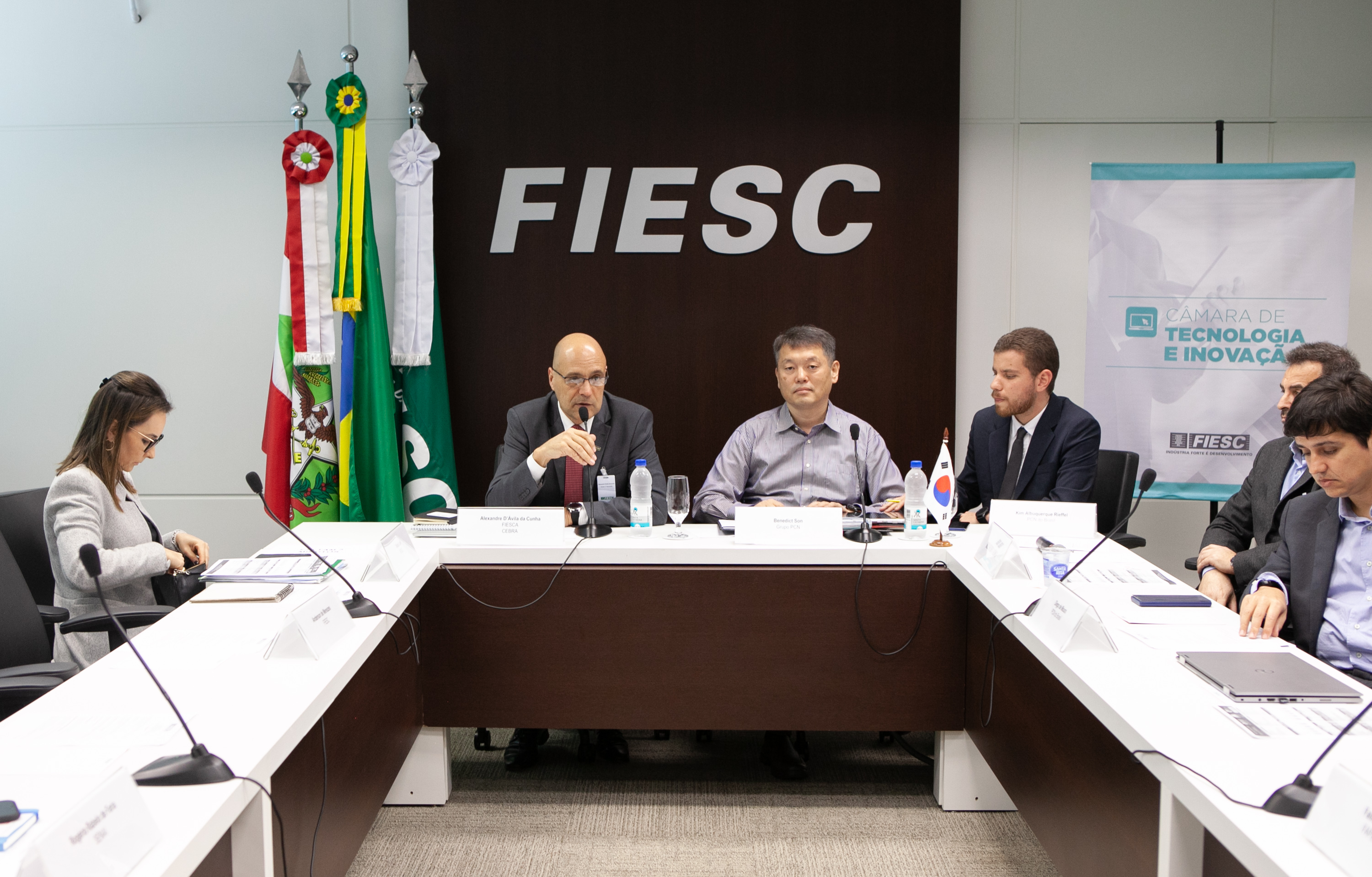 Florianópolis, 26.8.2019 – A Câmara de Tecnologia e Inovação da FIESC debateu a certificação de produtos da indústria em geral e para empresas do segmento de TI, especialmente aquelas que exportam e precisam cumprir determinadas normas internacionais. O encontro, realizado nesta segunda-feira (26), em Florianópolis, com a participação do diretor-geral do grupo sul-coreano PCN, Benedict Son. O grupo atua com certificação em praticamente todos os mercados do mundo, inclusive no Brasil, com escritório em Porto Alegre.