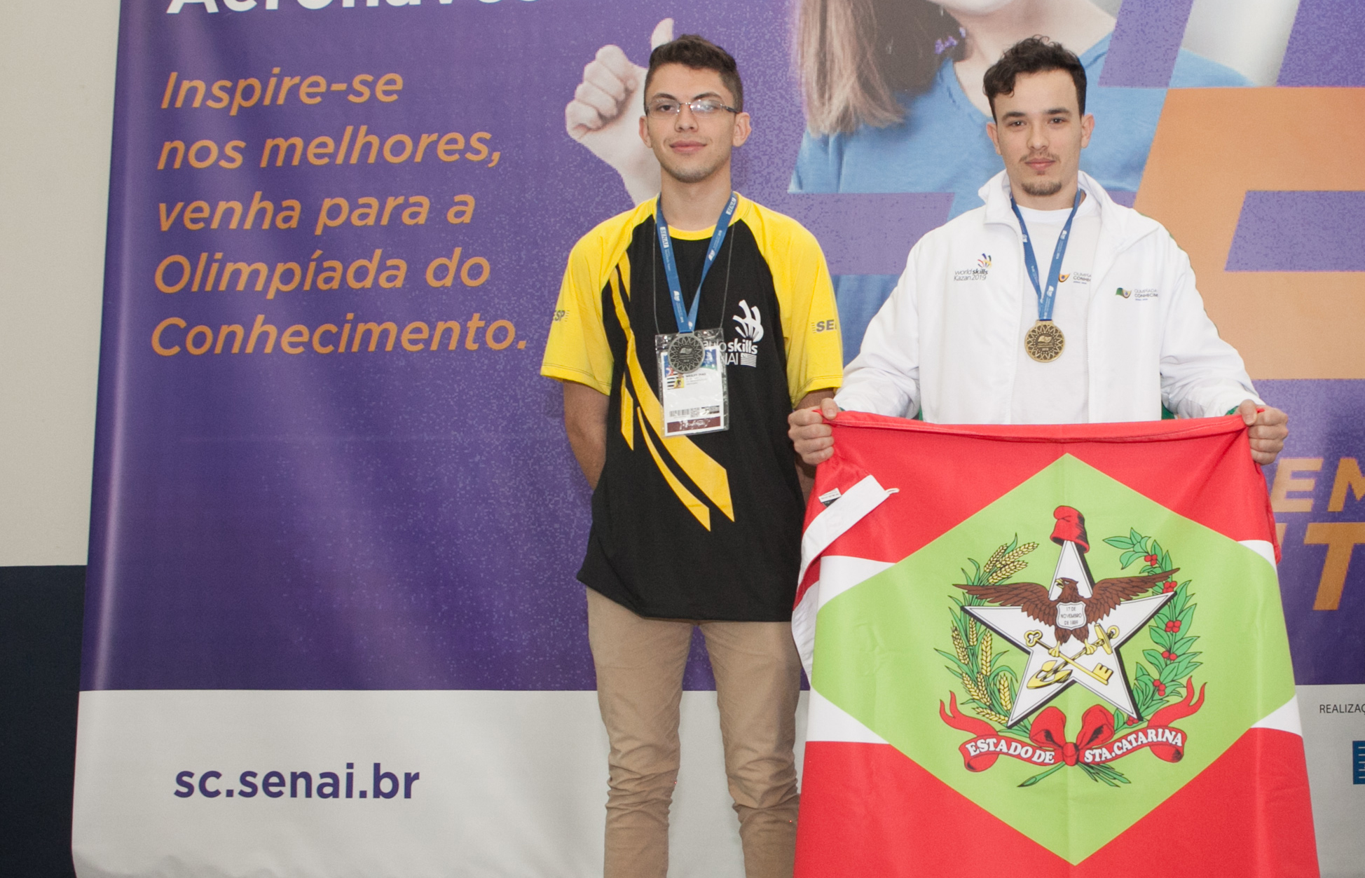 Palhoça, 24.8.2018 – O estudante Gabriel Liberato Hoffmann, do SENAI em Palhoça, será o representante brasileiro em Manutenção de Aeronaves na próxima WorldSkills, o torneio internacional de educação profissional, que será realizada na cidade russa de Kasan, de 22 a 27 de agosto de 2019. Ele garantiu a vaga ao vencer a etapa seletiva, realizada nesta semana no Hangar da unidade do SENAI de sua cidade. A premiação ocorreu nesta sexta (24). O paulista Wesley Dias, de Botucatu, ficou com a medalha de prata.