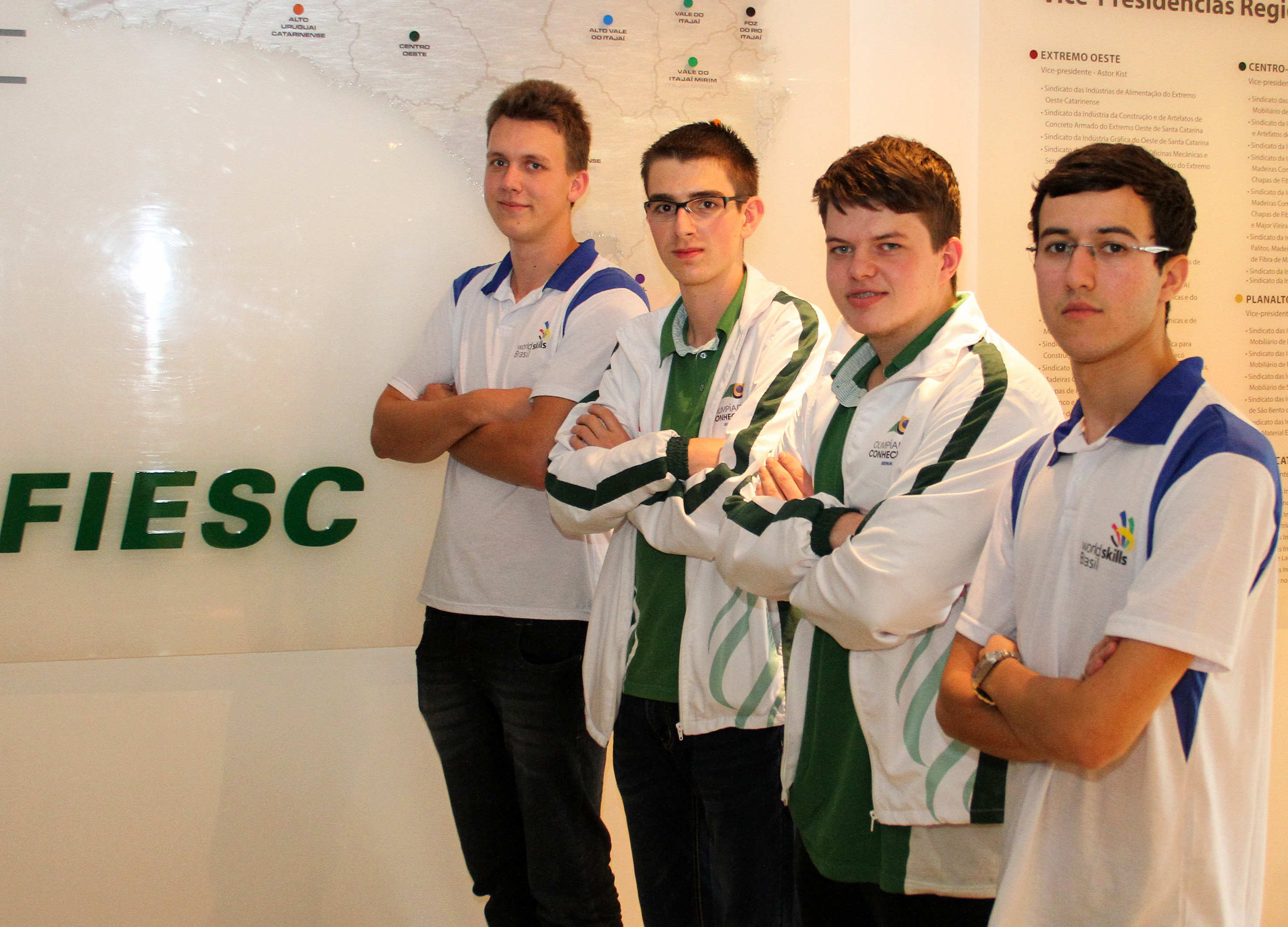 De São Bento do Sul, participam os jovens Eduardo Kruczkievicz (tornearia a CNC) e Alef Scholze (fresagem a CNC); Rodrigo Campos, de Palhoça, disputa as provas na ocupação manutenção de aeronaves; de Blumenau, participam os estudantes Rafael Oening (administração de sistemas de rede) e Jonatas Walter (sistema drywall e gesso) – cujas provas de classificação para o mundial foram as últimas realizadas.