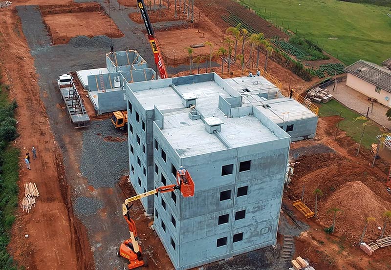 Ele ressalta que o desenvolvimento da nova metodologia, que já vinha sendo vislumbrada pela construtora, só se tornou possível por conta de duas circunstâncias. Uma delas foi a normatização do sistema de paredes autocortantes, por meio da NBR (norma brasileira) 16.475, de 2017. “Isso possibilitou a utilização dessa metodologia em financiamentos habitacionais”, explica Stangherlin. Outro ponto importante foi a reforma trabalhista e a lei de terceirização, que passaram a viabilizar a contratação de equipes para tarefas específicas dentro da atividade-fim.