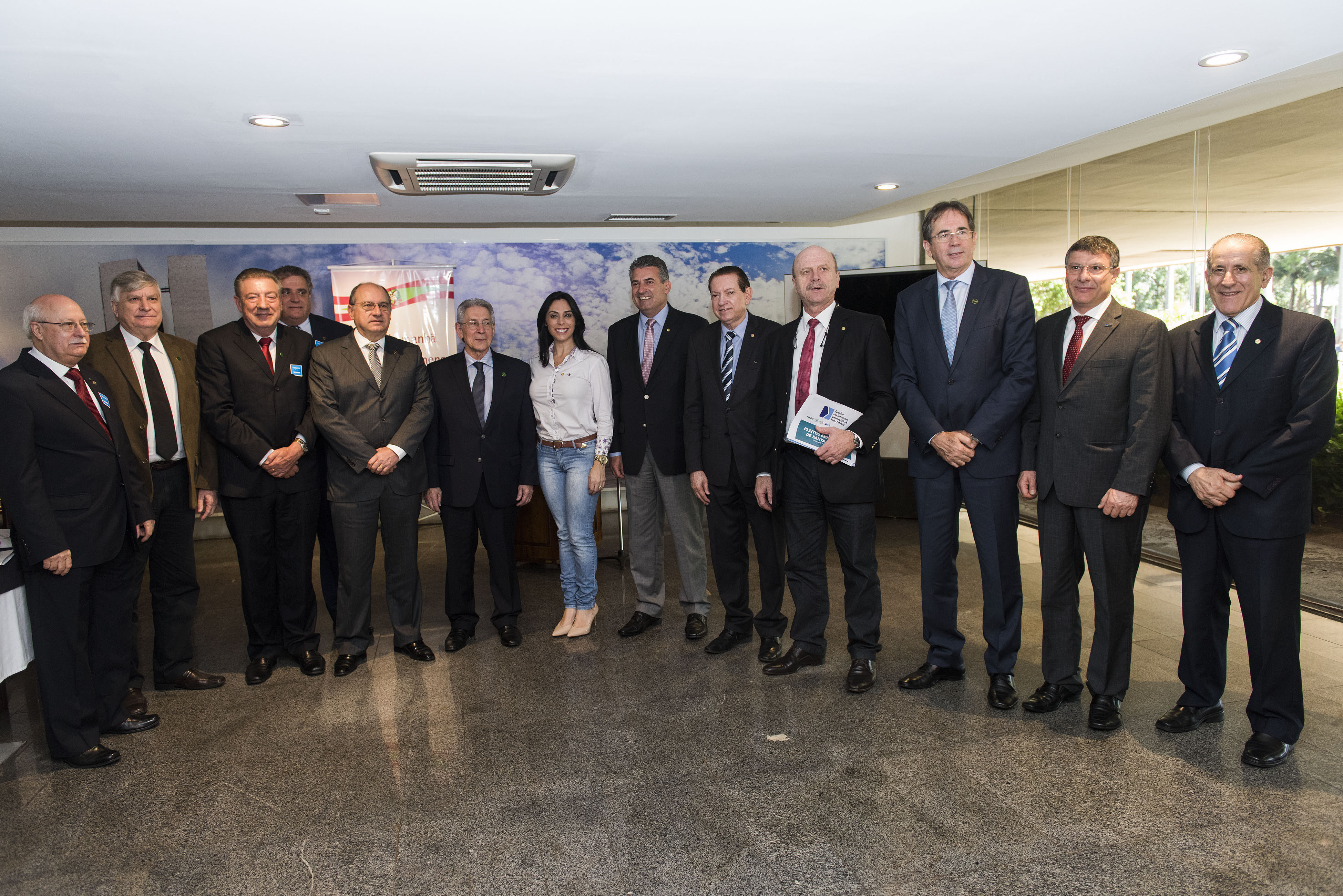 Brasília, 8.10.2015 – O Conselho das Federações Empresariais de Santa Catarina (COFEM) realizou na manhã desta quinta-feira (8), em Brasília, reunião com o Fórum Parlamentar Catarinense. As federações da indústria (FIESC), da agricultura (FAESC), das associações empresariais (FACISC), das micro e pequenas empresas (FAMPESC), das câmaras lojistas (FCDL), do comércio (FECOMÉRCIO) e dos transportes (FETRANCESC) reforçaram a defesa de agenda para criar um ambiente favorável à retomada da economia. Entre as posições defendidas estiveram a necessidade de evitar qualquer medida que aumente a carga tributária, buscar melhores condições para infraestrutura, além de evitar a apropriação dos recursos das entidades do Sistema S.