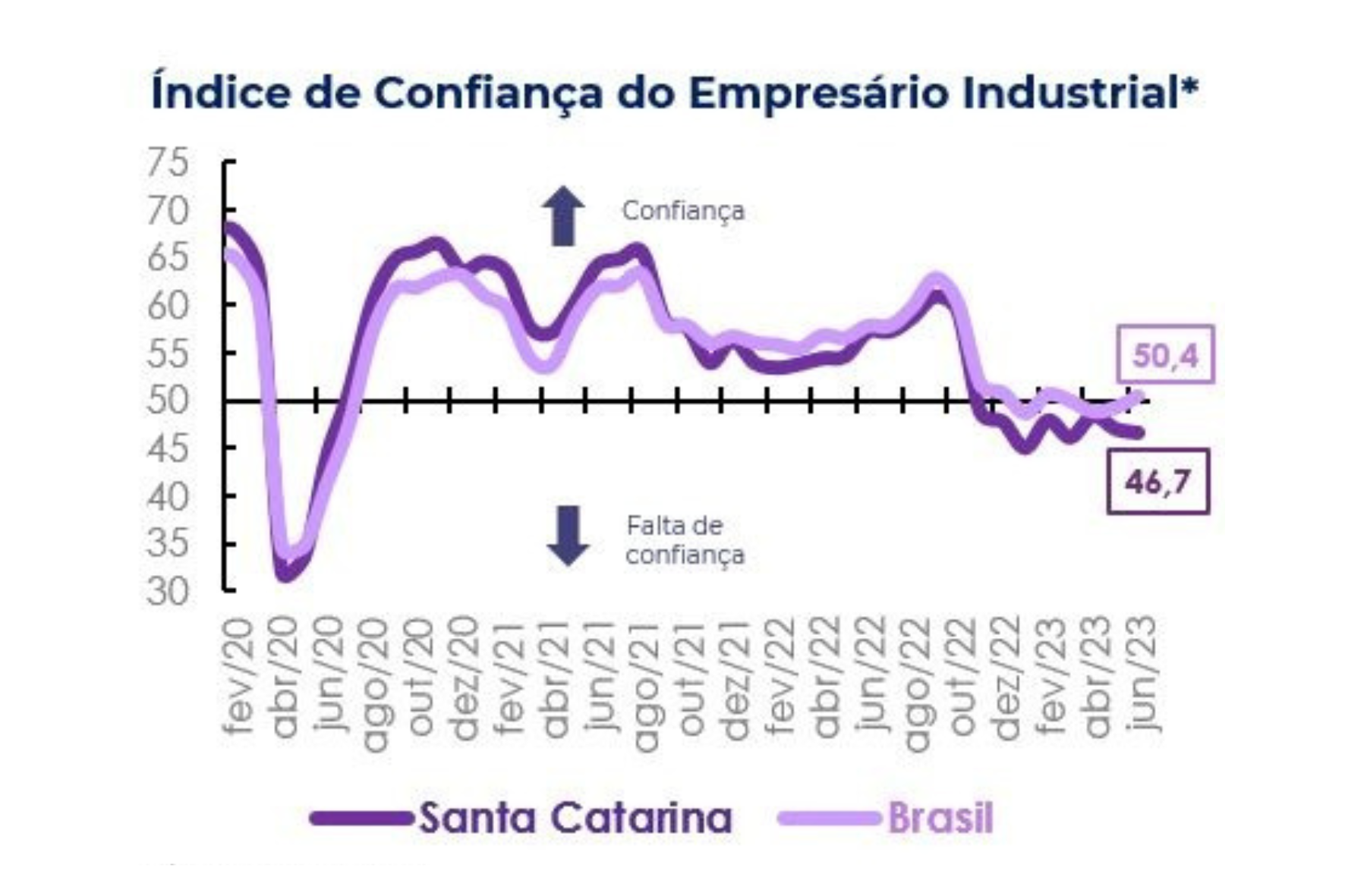 Florianópolis, 4.7.2023 – O Índice de Confiança do Empresário Industrial (ICEI), em junho, registrou queda de 0,4 ponto. Isso significa que o industrial catarinense continua demonstrando falta de confiança na economia. De acordo com análise do Observatório FIESC, a queda foi de menor magnitude em relação a maio, 1,4 ponto, indicando uma redução no ritmo do recuo. Na média brasileira, o ICEI registrou 50,4 pontos, passando a demonstrar confiança entre os industriais, após três meses abaixo do limite. Desde o início do ano, o indicador brasileiro oscila entre o cenário otimista e pessimista de confiança do industrial.