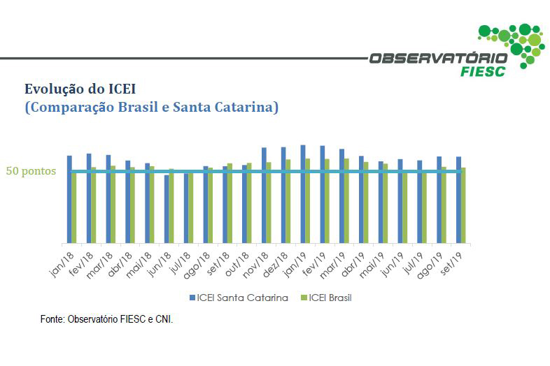 Em nível nacional, a confiança manteve-se inalterada na passagem de agosto para setembro de 2019, em 59,4 pontos. Essa estabilidade interrompe uma sequência de três meses consecutivos de alta, segundo levantamento da CNI. Os números mostram que, com a estabilidade, a confiança do empresário brasileiro segue elevada: o ICEI segue 4,8 pontos acima de sua média histórica e 6,6 pontos acima do registrado em setembro de 2018.