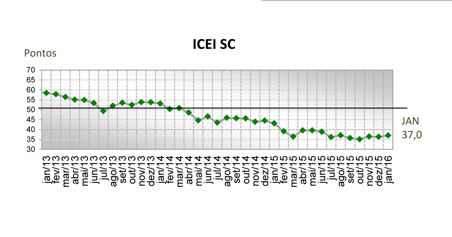 Florianópolis, 19.01.2016 – O índice que mede a confiança dos industriais catarinenses com a economia registrou em janeiro 37 pontos, uma queda de 6,1 pontos sobre os 43,1 pontos de janeiro do ano passado. A avaliação sobre o momento atual (30,7 pontos) é inferior à da perspectiva futura (40,2 pontos). O levantamento foi divulgado nesta terça-feira (19) pela Federação das Indústrias de Santa Catarina (FIESC).