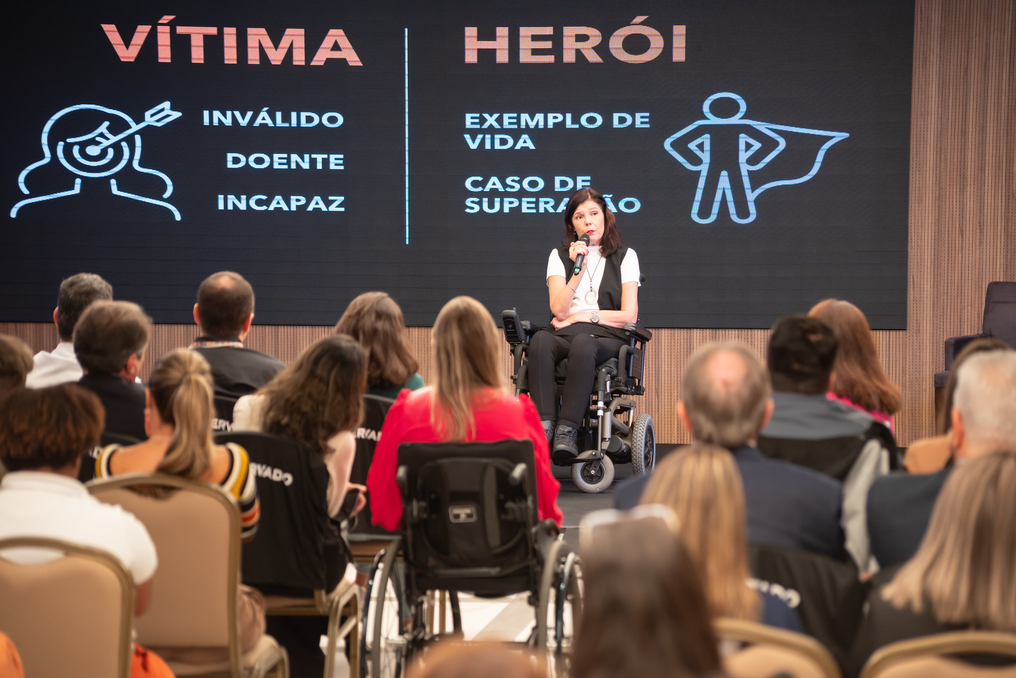 A jornalista destacou que o trabalho é um meio de realizar sonhos e pessoas com deficiência estão cada vez mais qualificadas. “Temos universidades entregando para o mercado centenas de profissionais todos os anos. Mas cadê o protagonismo destas pessoas? Está na hora de fazer parte da mesa de decisão, é aí que vira a chave”, salientou Flavia, afirmando ainda que, sem as pessoas com deficiência na tomada de decisão, pessoas sem deficiência continuarão decidindo o que consideram ser melhor para as pessoas com deficiência.