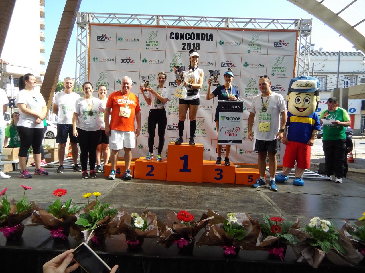 Concórdia, 8.4.2018 – Mais de 600 pessoas participaram neste domingo (8) da Corrida do Bem, promovida pelo SESI, entidade da FIESC. A cidade de Concórdia sediou a primeira etapa das corridas, que ocorrerão em todas as regiões do Estado. Um dos objetivos do evento é promover ações que tenham como foco a saúde e a qualidade de vida. Em toda a edição, parte dos recursos arrecadados com as inscrições é destinada a uma instituição de amparo social. Neste ano, a APAE de Concórdia foi beneficiada e a entrega simbólica do valor foi realizada durante a cerimônia de premiação dos vencedores.