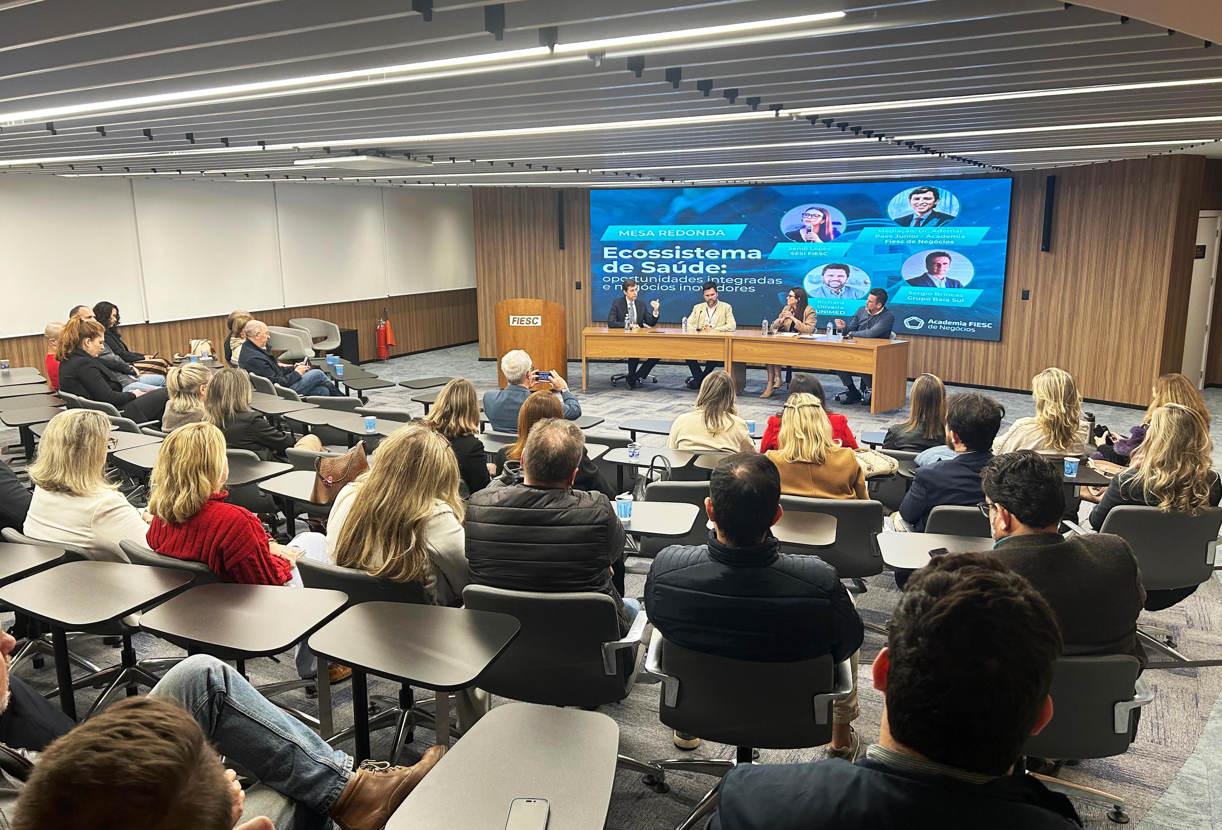 A mesa redonda Ecossistema de saúde: oportunidades integradas e negócios inovadores foi realizada na Academia FIESC de negócios.