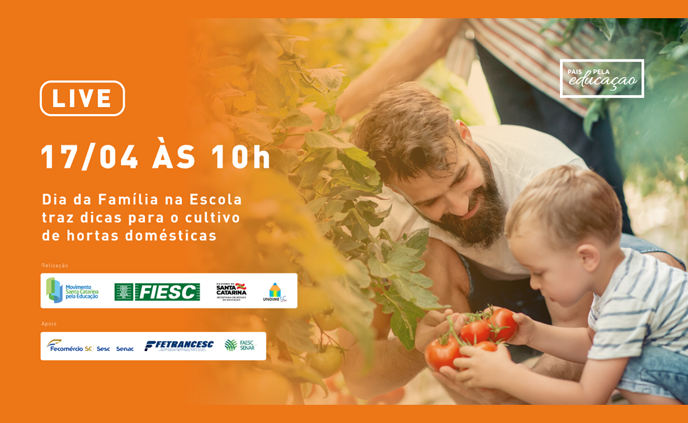 Florianópolis, 14.4.2021 - Com o objetivo de incentivar uma vida mais saudável, o Dia da Família na Escola (celebrado por meio de lei estadual sempre em abril) terá como tema este ano “Uma horta em cada canto”. O assunto será abordado em evento online e gratuito neste sábado, dia 17, a partir das 10 horas, no YouTube da Secretaria de Estado da Educação.