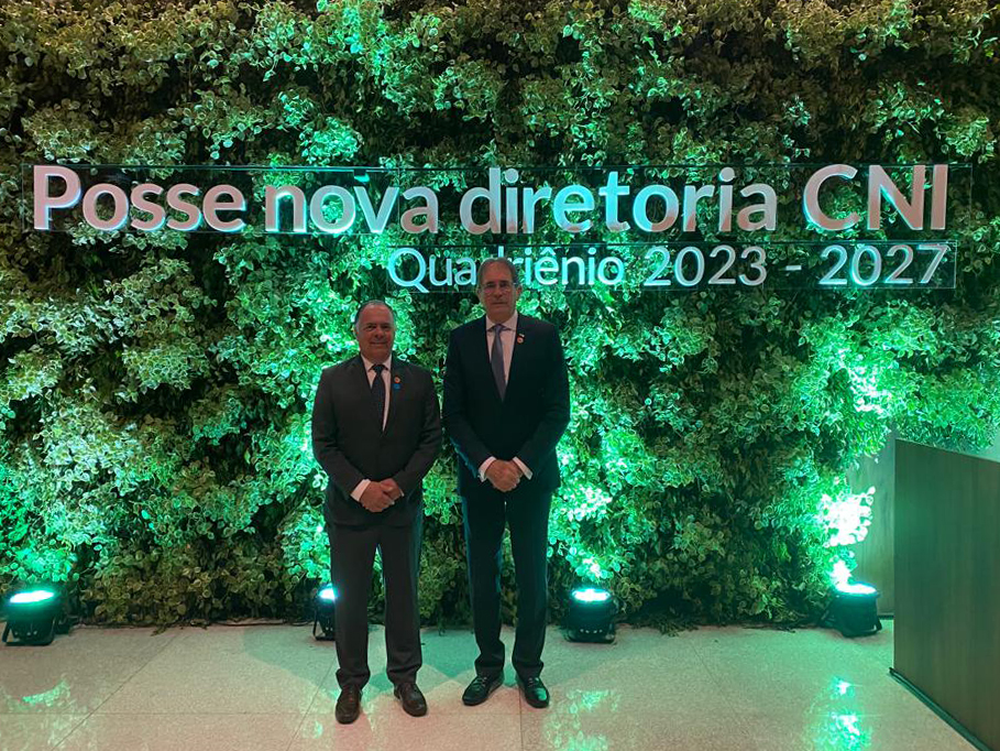 Florianópolis, 01.11.2023 -  Mario Cezar de Aguiar, presidente da Federação das Indústrias de Santa Catarina (FIESC), assumiu em cerimônia nesta terça-feira (31), em Brasília, mandato como vice-presidente da Confederação Nacional da Indústria (CNI). Aguiar integra a diretoria eleita para o período 2023-2027, que tem como presidente o também industrial Ricardo Alban. O 1° vice-presidente da FIESC, Gilberto Seleme, também foi empossado na cerimônia, assumindo o cargo de diretor da CNI.