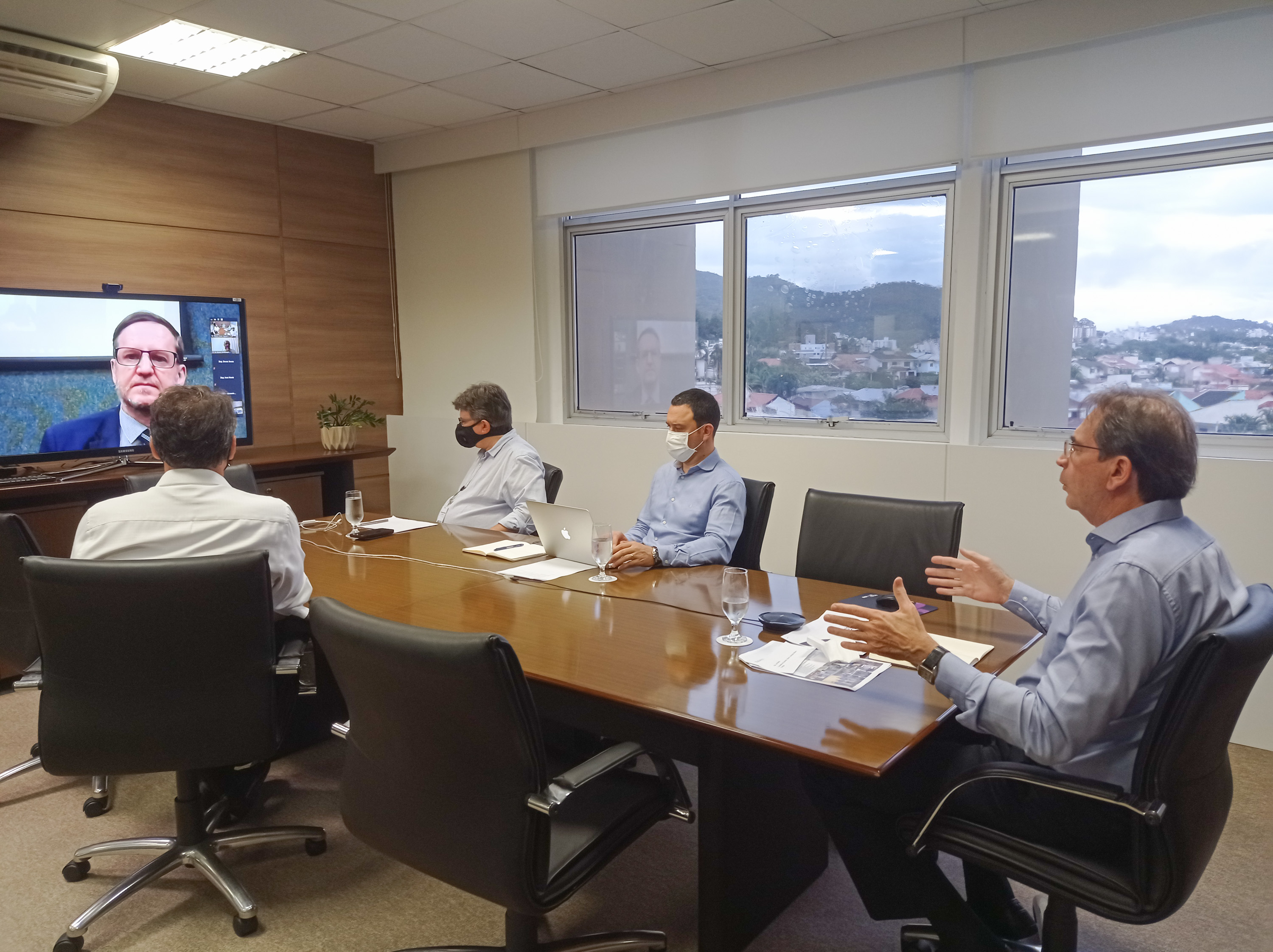 No encontro, Aguiar também ressaltou que a Federação criou protocolos para que a indústria pudesse operar com segurança e lançou o CoronaDados, um sistema de monitoramento de saúde, desenvolvido pelo SESI/SC. “É importante discutirmos as ações que foram feitas, as que estão em curso e as medidas que podemos adotar para enfrentar o momento, que é bastante difícil. Desde o início da pandemia, a FIESC se prontificou a colaborar com o governo do estado. Sempre dissemos que preservar a saúde era prioridade, mas manter a economia ativa e dinâmica era uma segunda prioridade. Fizemos todos os protocolos para que a indústria pudesse continuar em funcionamento”, explicou. Ele também destacou o alinhamento com o governo catarinense e a importância do Grupo Econômico, coordenado pelo secretário Paulo Eli, que se reúne semanalmente e acompanha a situação da pandemia no estado.