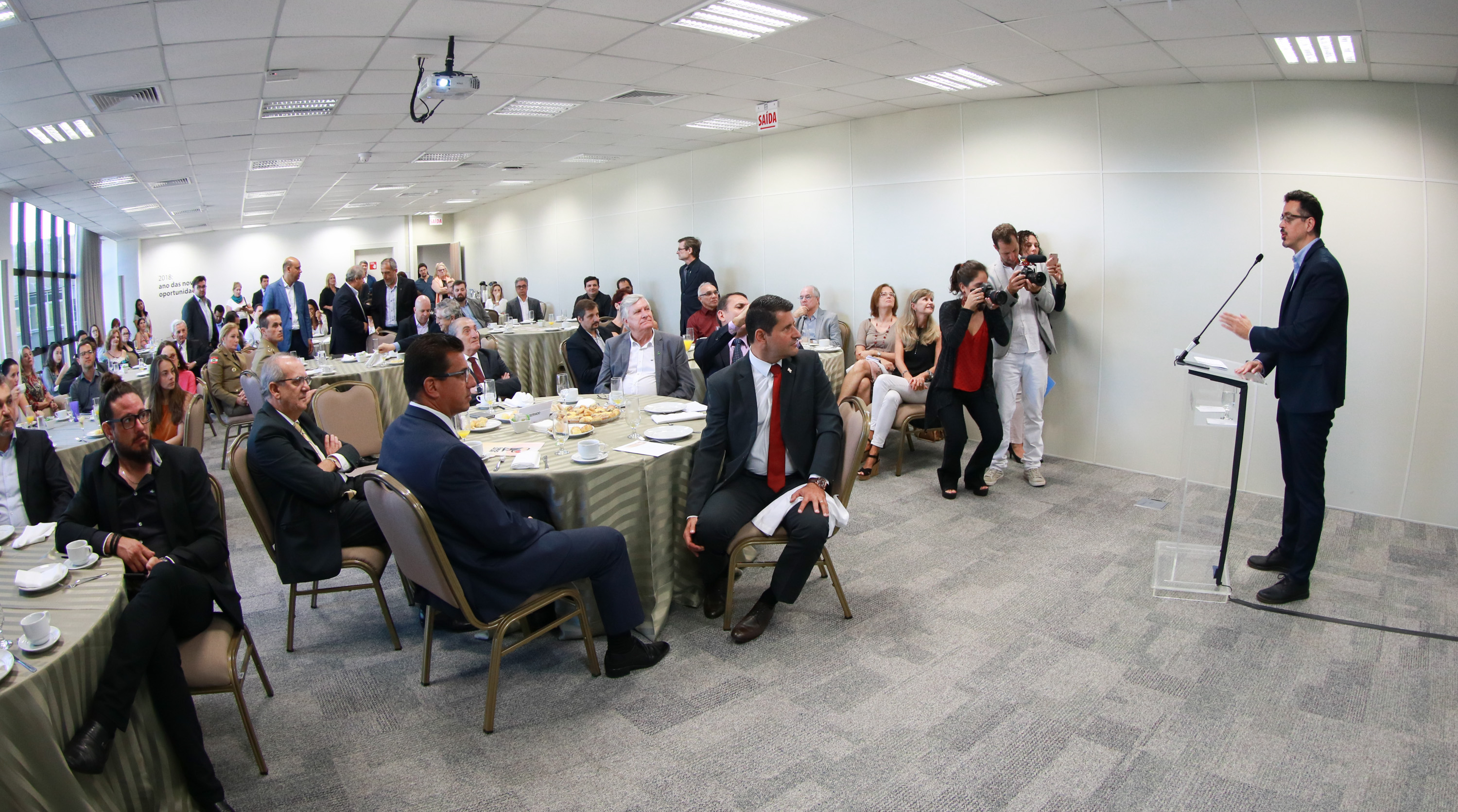 Florianópolis, 26.4.2018 – A Federação das Indústrias de Santa Catarina (FIESC) realizou na manhã desta quinta-feira (26) um café da manhã com o ministro da Cultura, Sérgio Sá Leitão. No encontro, a entidade apresentou ações como o projeto Fundo Social e a rota criativa do Programa de Desenvolvimento Industrial Catarinense (PDIC). O ministro participou ainda de seminário que visa esclarecer sobre as leis de incentivo à cultura.