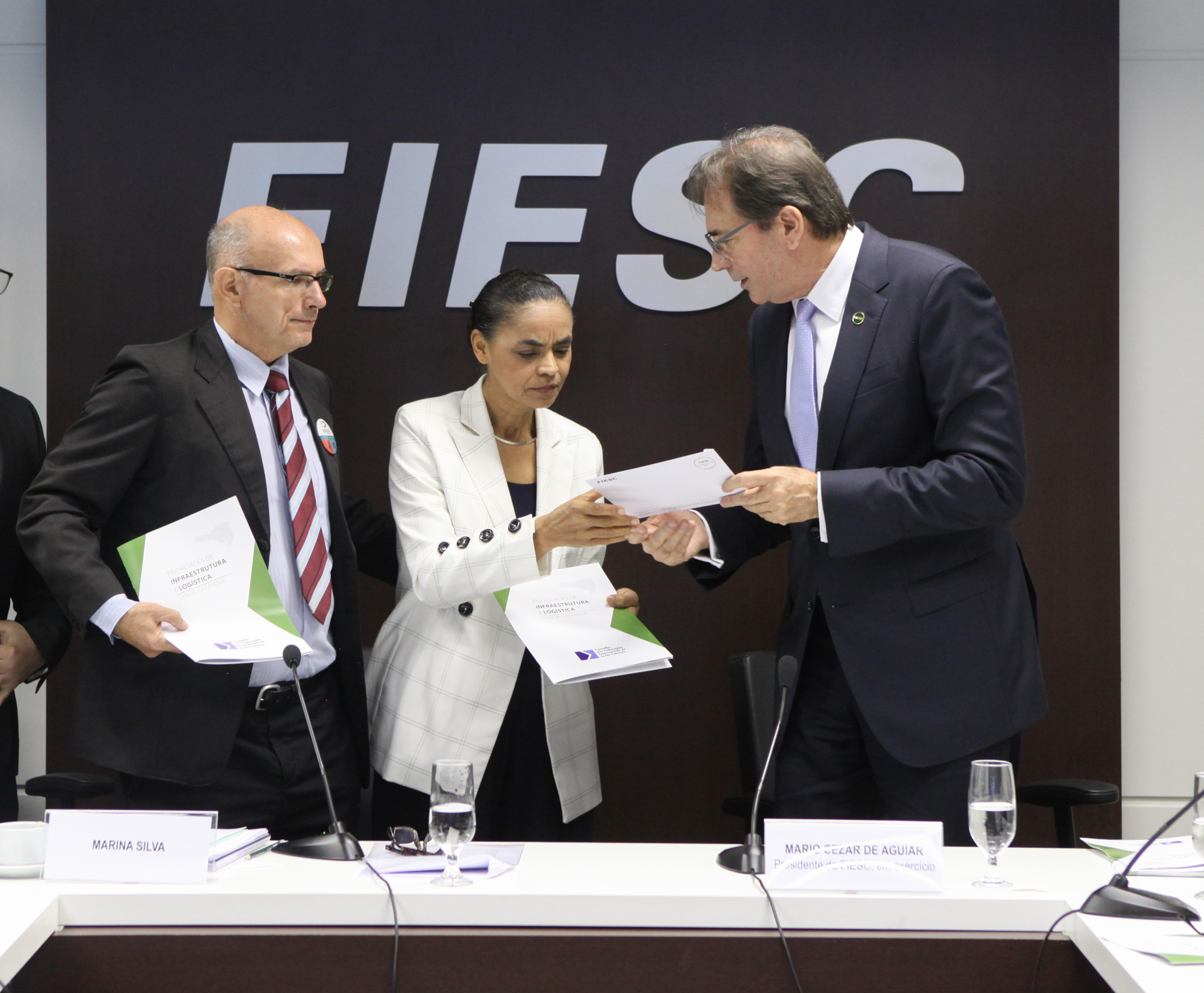 Florianópolis, 19.7.2018 – O setor empresarial de Santa Catarina entregou à pré-candidata à presidência da República, Marina Silva, documento com seis demandas do Estado que contemplam as prioridades nas áreas de infraestrutura, logística e energia. Ela participou de encontro com representantes do Conselho das Federações Empresariais de Santa Catarina (COFEM), na manhã desta quinta-feira (19), na Federação das Indústrias de Santa Catarina (FIESC), em Florianópolis. Clique aqui e veja a íntegra do documento com as propostas.