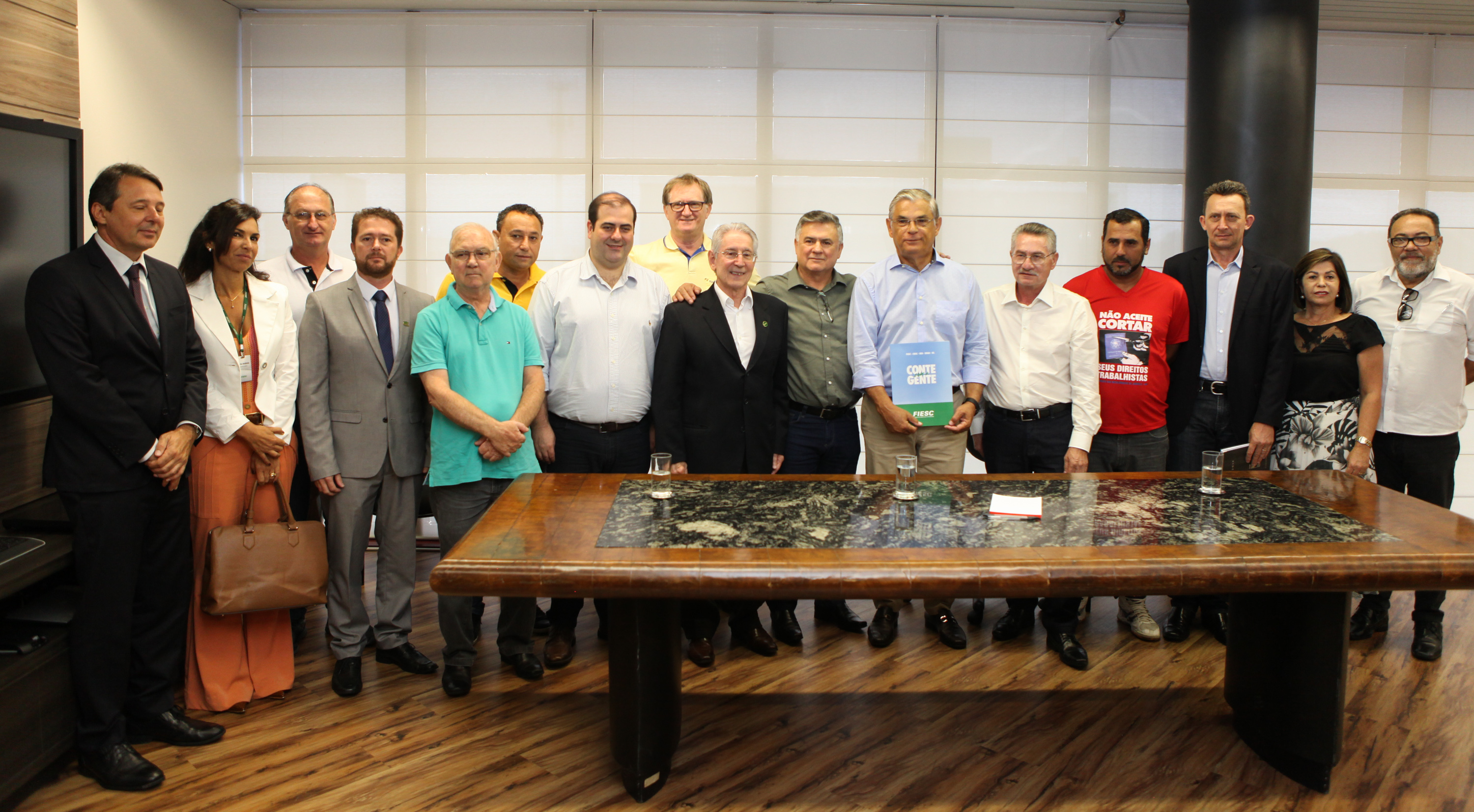 Florianópolis, 25.1.2018 – Representantes das federações empresariais e de centrais sindicais laborais de Santa Catarina entregaram ao governador em exercício, Eduardo Pinho Moreira, a proposta de consenso para a atualização do piso mínimo regional catarinense, durante encontro nesta quinta-feira (25), em Florianópolis. O próximo passo é encaminhar o projeto de lei à Assembleia Legislativa. Os pisos acordados para as quatro faixas foram de R$ 1.110, R$ 1.152, R$ 1.214 e R$ 1.271. O índice médio de reajuste foi de 2,95%. Os novos valores foram acordados no último dia 18.