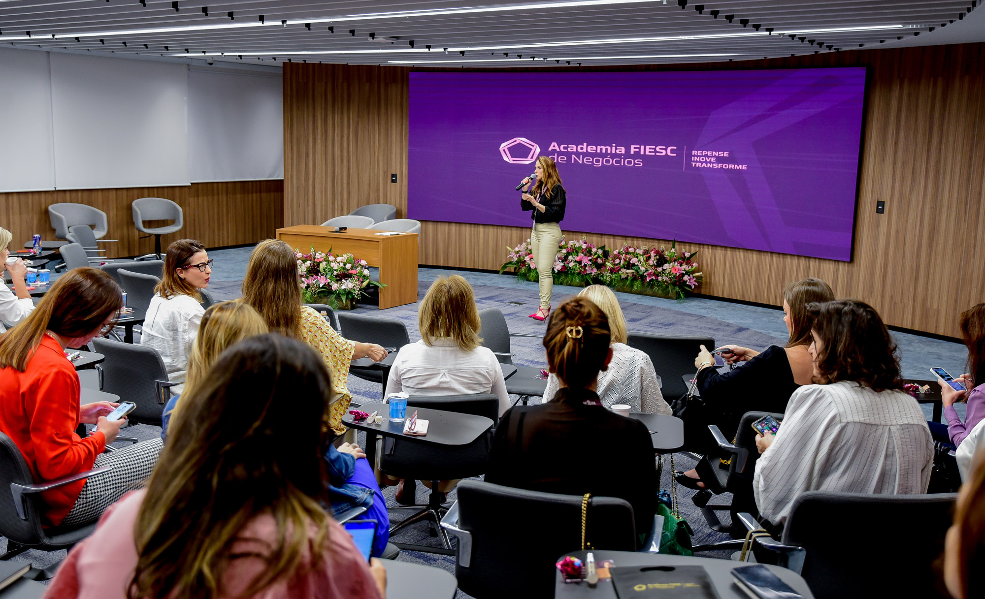 “O principal objetivo desta formação é apresentar e ensinar como aplicar ferramentas tecnológicas na rotina destas mulheres. Além disso, habilidades como comunicação na liderança, gestão do tempo e inteligência emocional também são desenvolvidas com o grupo”, descreve Silvia Marafon, curadora da formação executiva para lideranças femininas desenvolvida pela Academia FIESC de Negócios.