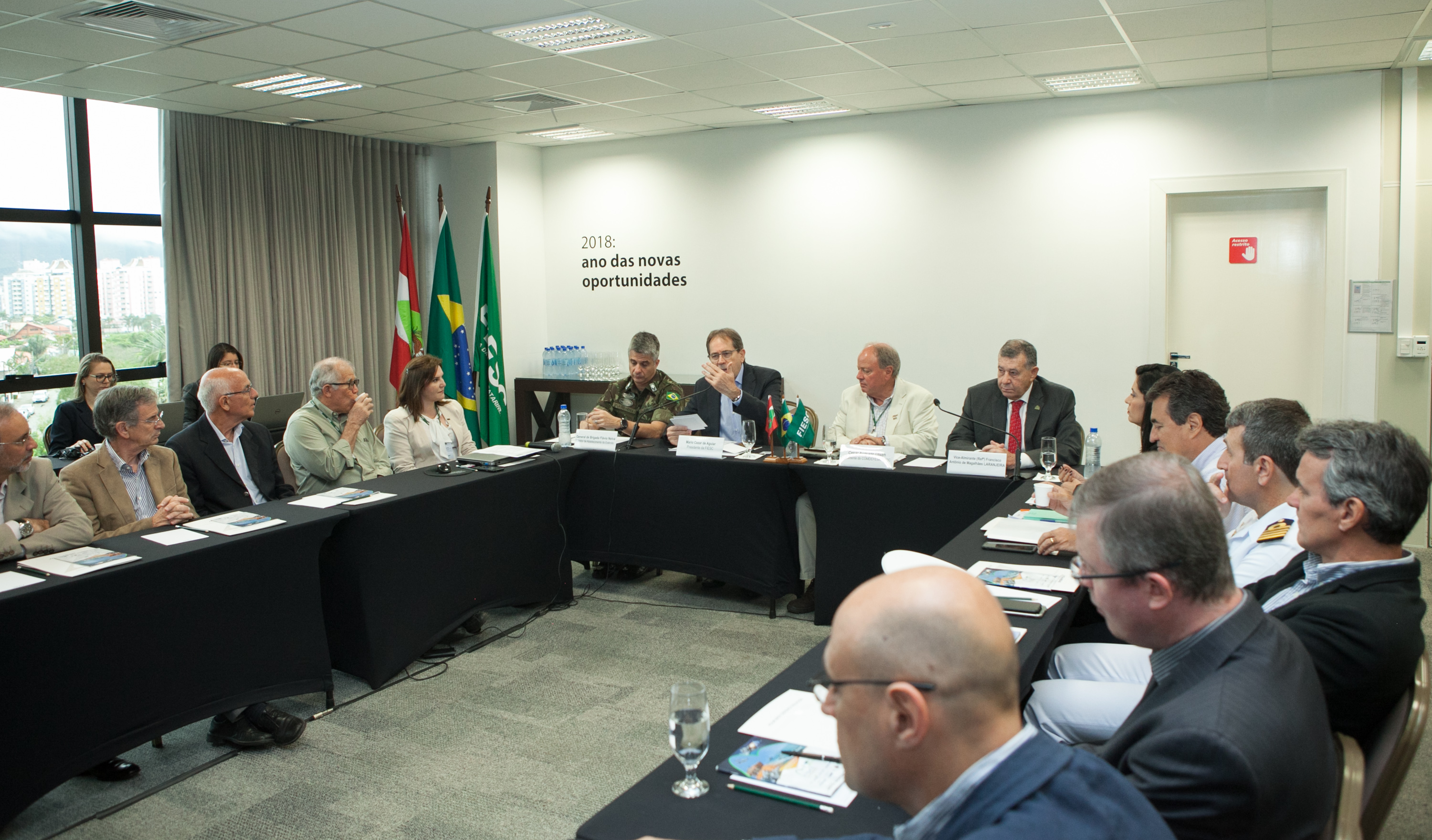 Florianópolis, 29.11.2018 – O Comitê da Indústria de Defesa da FIESC (Comdefesa) realizou reunião nesta quinta-feira (29) com o objetivo de aproximar a indústria das demandas militares. No encontro, também foi destacada a importância da participação das pequenas empresas na cadeia de fornecimento. O presidente da FIESC, Mario Cezar de Aguiar, salientou que o setor de defesa representa grande oportunidade de negócios e inovação para a indústria catarinense.