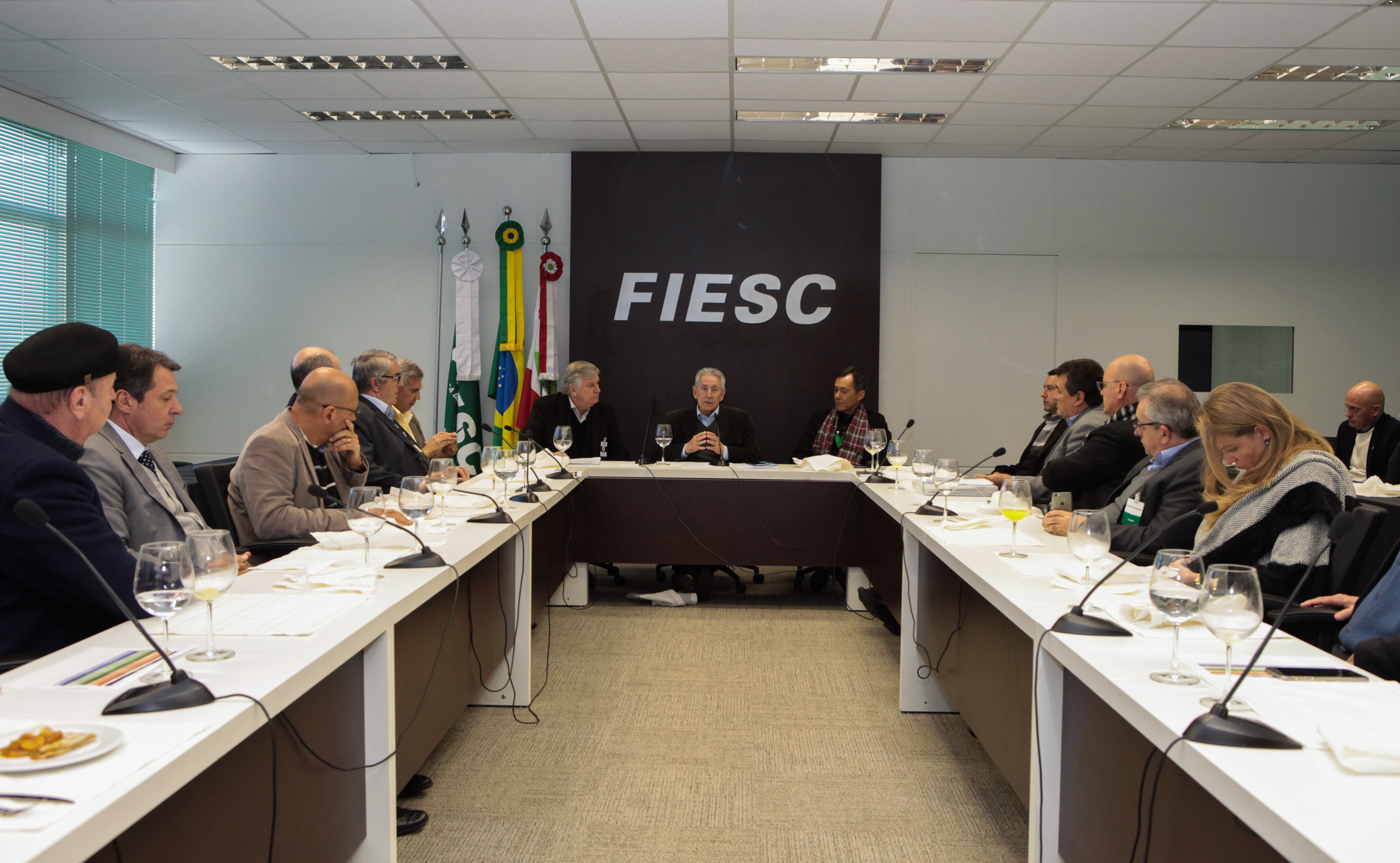Florianópolis, 13.6.2016 – Representantes de sindicatos de indústria da Grande Florianópolis filiados à Federação das Indústrias de Santa Catarina (FIESC) participaram de encontro com o presidente da instituição, Glauco José Côrte, nesta segunda-feira (13), na Capital. Os empresários trouxeram as demandas das indústrias e dos setores que representam e foram informados sobre o trabalho que a FIESC e suas entidades (SESI, SENAI e IEL) têm realizado em áreas como educação, tecnologia e inovação, saúde e segurança no trabalho, internacionalização, desenvolvimento associativo e ambiente institucional. A reunião teve a participação dos executivos das entidades da FIESC e do vice-presidente regional da entidade, Tito Alfredo Schmitt, que defendeu a sensibilização das empresas para fortalecer ainda mais o associativismo.