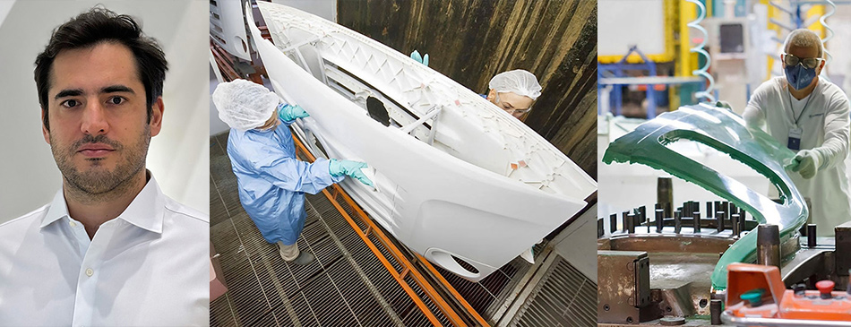 Para fabricar seus produtos a companhia utiliza compósitos, que podem ser definidos como materiais formados pela união de dois ou mais materiais diferentes para se obter um novo material com propriedades superiores aos originais. Um deles é o SMC (Sheet Molding Compound), composto por fibras de vidro impregnadas com resinas poliéster. O preparo da matéria-prima é feito na própria empresa, única do setor que é verticalizada no País. Um de seus desafios é obter padrões de excelência nessa etapa, que envolve processos químicos com muitas variáveis, pois as peças fabricadas são estruturais, isto é, devem obedecer a requisitos químicos, físicos e de exposição à luz. “A indústria automotiva possui parâmetros altíssimos de qualidade e performance”, afirma Aguiar.