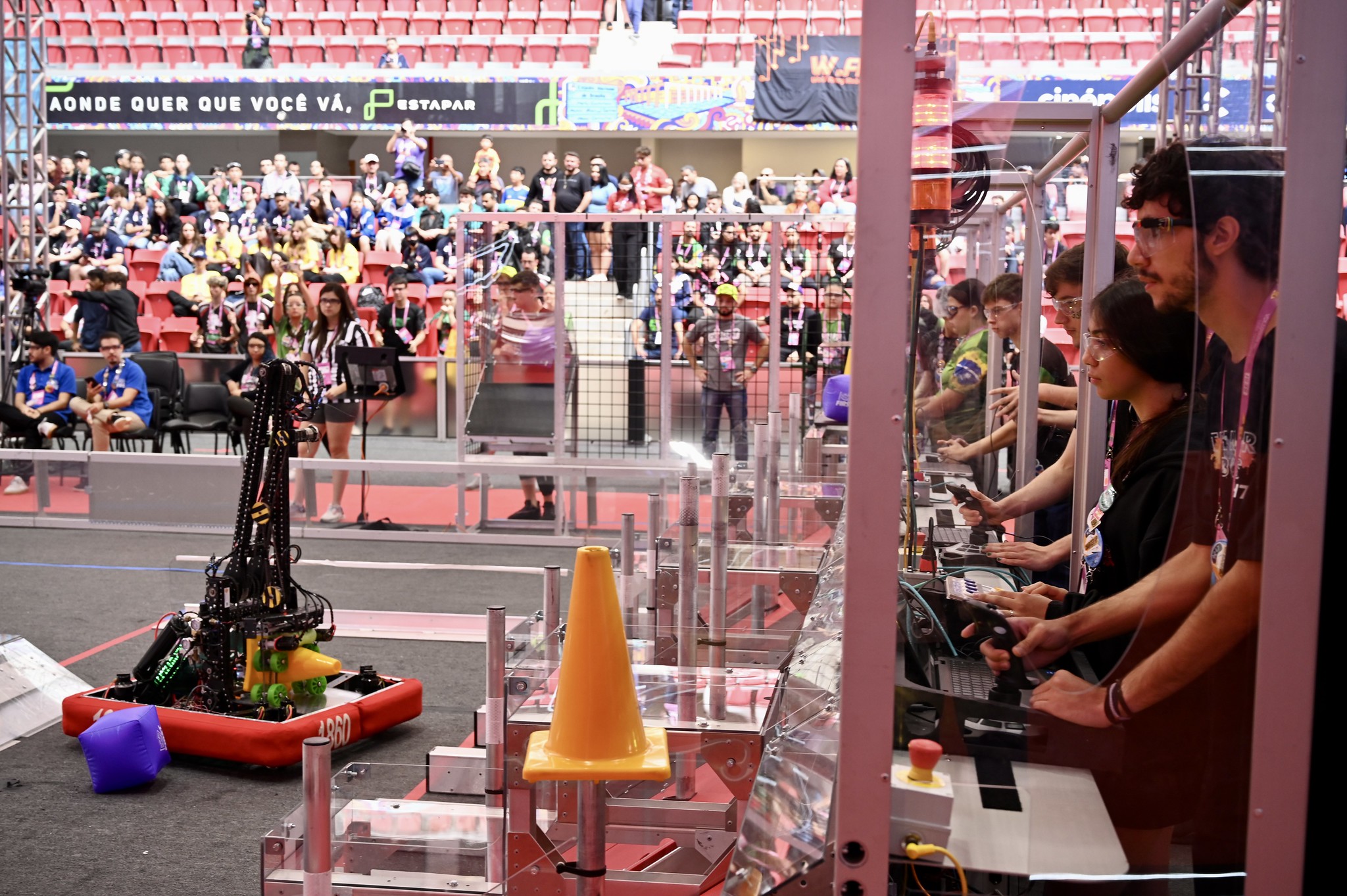 FIRST Tech Challenge (FTC): estudantes do ensino médio constroem robôs maiores, de até 19kg, a partir de um kit de peças reutilizáveis, tecnologia Android e uma variedade de níveis de programação baseada em CAD, Java e Blocks. Os competidores desenvolvem um portfólio de engenharia para detalhar o funcionamento dos robôs, que devem cumprir atividades, como carregar blocos, em uma arena.