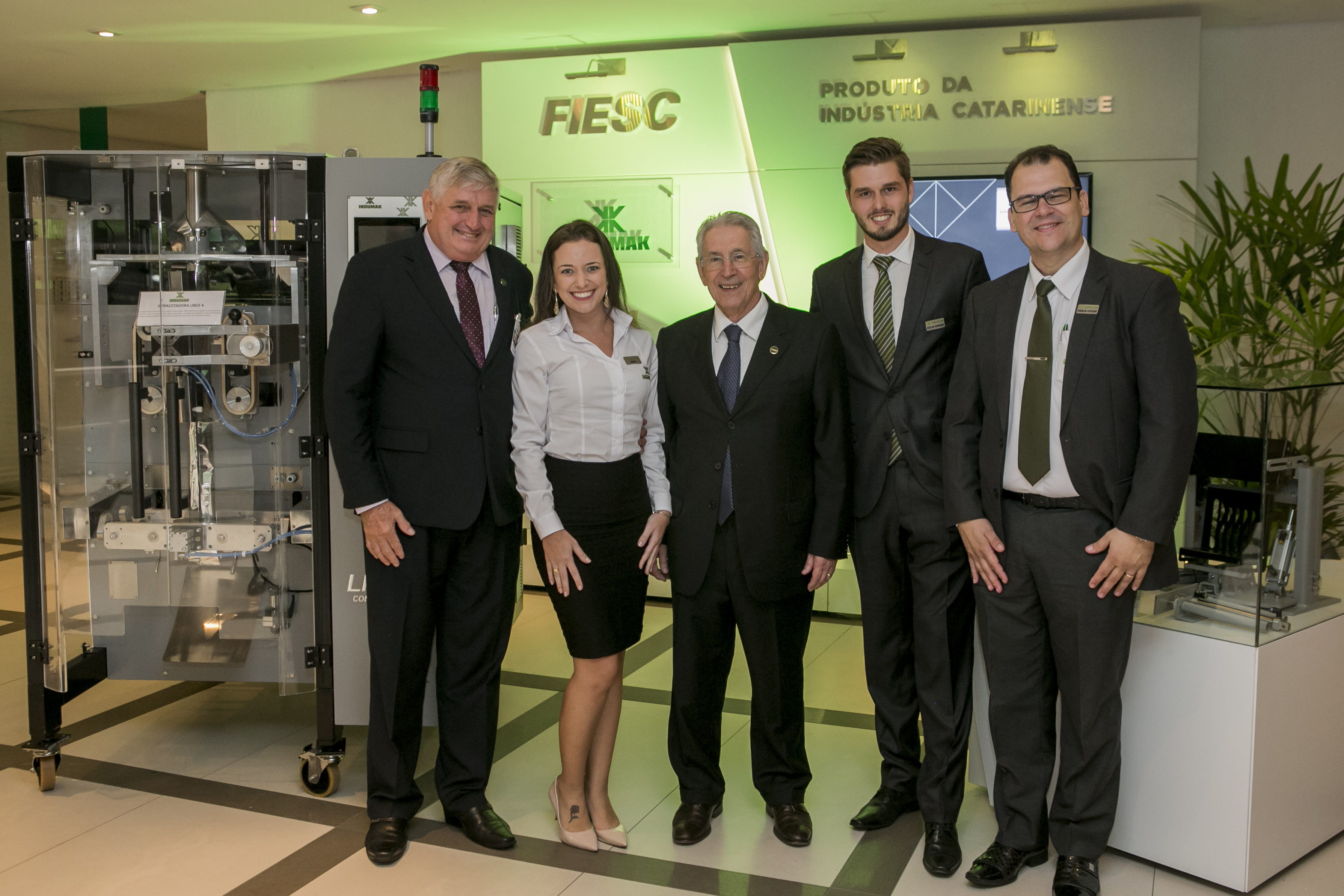Florianópolis, 24.3.2017 – A Indumak, empresa fabricante de equipamentos para automação do processo de empacotamento, com sede em Jaraguá do Sul, expõe uma empacotadora automática no Espaço Indústria, ambiente localizado na Federação das Indústrias de Santa Catarina (FIESC), em Florianópolis. O espaço mostra todos os meses o trabalho de empresas do Estado. O diretor-presidente da empresa, Célio Bayer, apresentou os principais produtos fabricados pela Indumak à diretoria da FIESC, nesta sexta-feira (24), em Florianópolis.