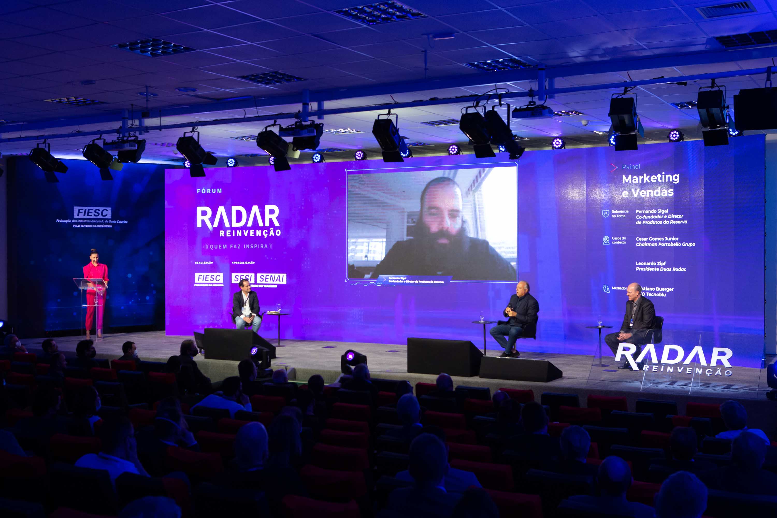 Florianópolis, 9.11.2021 - Reinventar a relação com o consumidor é um dos principais desafios do setor produtivo. No quarto painel do Fórum Radar Reinvenção, que a FIESC promove nesta terça e quarta (9 e 10 de novembro), Reserva, Portobello e Duas Rodas relataram suas apostas para reter clientes. Entre as estratégias que vêm sendo adotadas pela indústria estão a agilidade em novos lançamentos, parcerias e inteligência artificial e colaborativa.
