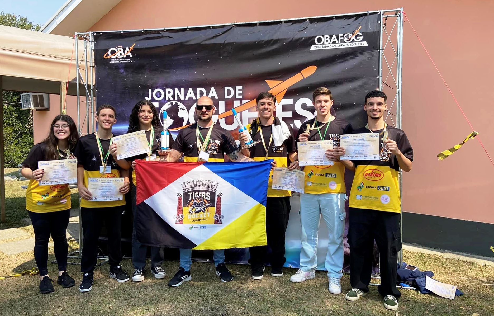 Florianópolis, 17.09.2024 – Estudantes das Escolas SESI em Criciúma e Tubarão conquistaram dois troféus e duas medalhas na Mostra Brasileira de Foguetes realizada em Barra do Piraí (RJ), em agosto.