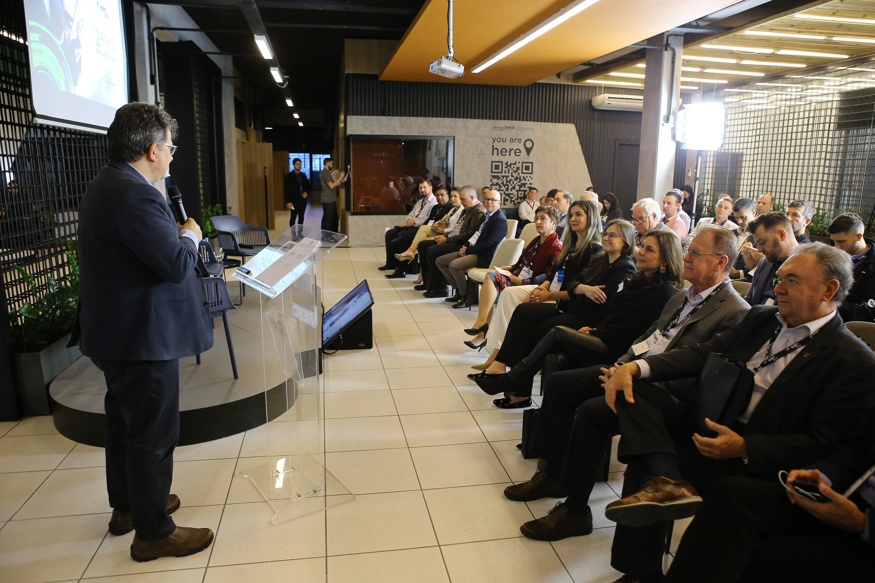 Joinville, 25.8.2022 – A Rede FaberUp, da Federação das Indústrias de Santa Catarina (FIESC), contou na última quarta-feira, 24 de agosto, cerca de 200 participantes no evento que celebrou os dois anos de conexões. O 4º FaberUp Conexões, com o tema “Boas Práticas de Inovação: Conexões que Geram Transformações”, foi realizado de forma híbrida, com cerca de 70% de público presencial, no ambiente do Hub de Manufatura Avançada do Instituto da Indústria, em Joinville, e os demais envolvidos conectados via transmissão síncrona digital.