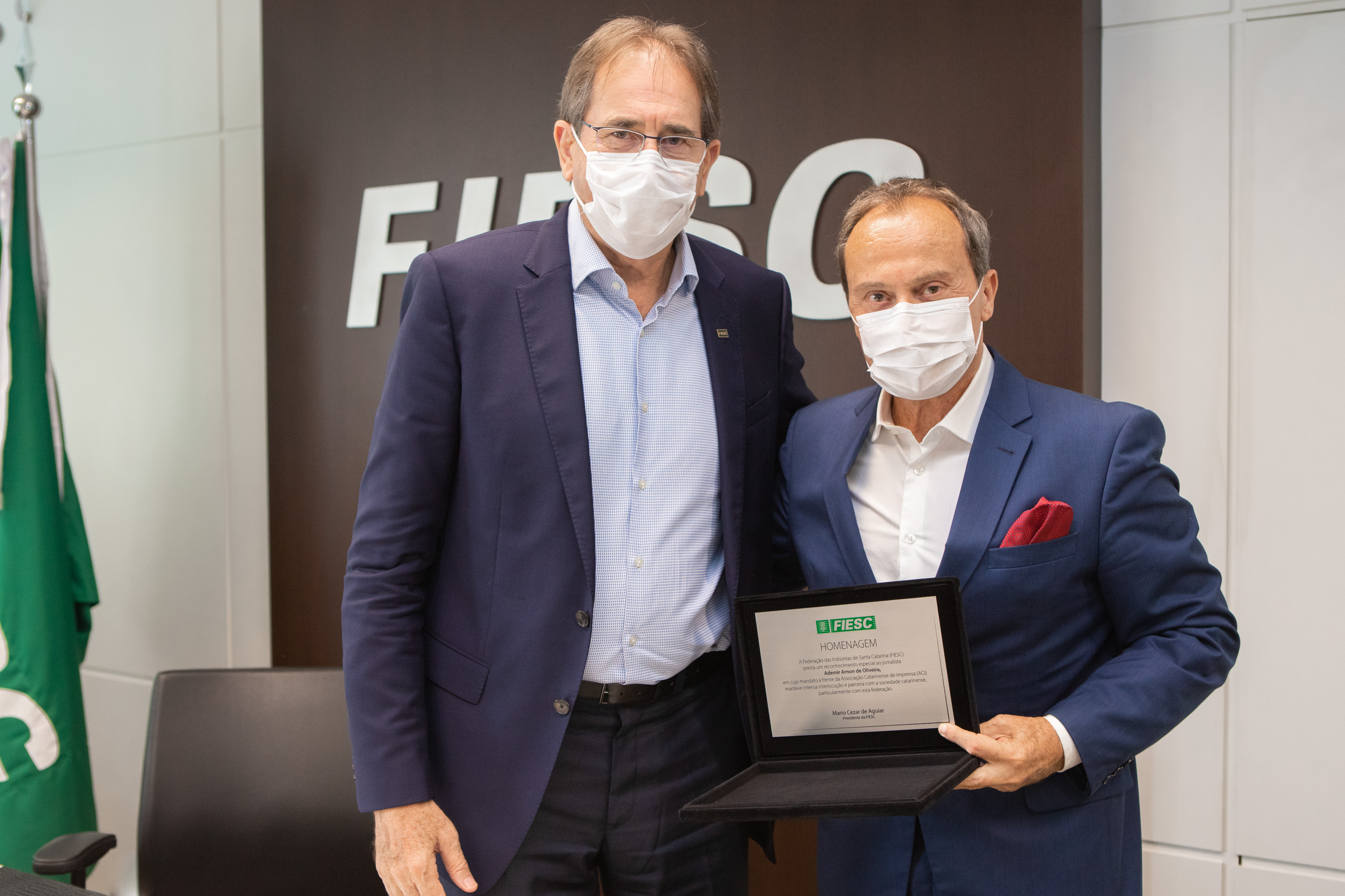 Acompanhado pela diretoria executiva, o presidente da FIESC, Mario Cezar de Aguiar, recebeu na sede da entidade, nesta quinta-feira (10), o ex-presidente da Associação Catarinense de Imprensa (ACI), Ademir Arnon. O objetivo foi homenagear o trabalho liderado por Arnon durante seus 12 anos à frente da Casa do Jornalista, período durante o qual as duas entidades mantiveram forte parceria em uma série iniciativas, como Prêmio FIESC de Jornalismo e a realização de uma série de eventos, em todas as regiões do estado, aproximando indústria e imprensa.