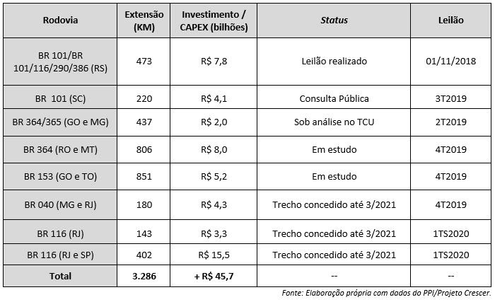 “A experiência recente de concessões de rodovias federais não pode ser considerada bem-sucedida. Dos oito trechos concedidos na última etapa do Programa Federal de Concessões Rodoviárias, um foi cassado e os demais enfrentam processos de ajustes que podem resultar em sua caducidade ou devolução”, destaca o estudo.
