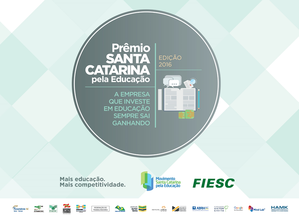 Florianópolis, 23.9.2016 – Quinze empresas e sindicatos do Estado venceram a segunda edição do Prêmio Santa Catarina pela Educação. O anúncio foi feito nesta sexta-feira (23), na FIESC, durante a reunião de diretoria da entidade. As vencedoras serão reconhecidas durante a quarta edição do Seminário Internacional de Educação que a FIESC promove no dia 20 de outubro, em Florianópolis, com a participação de especialistas dos Estados Unidos, Chile e Colômbia.