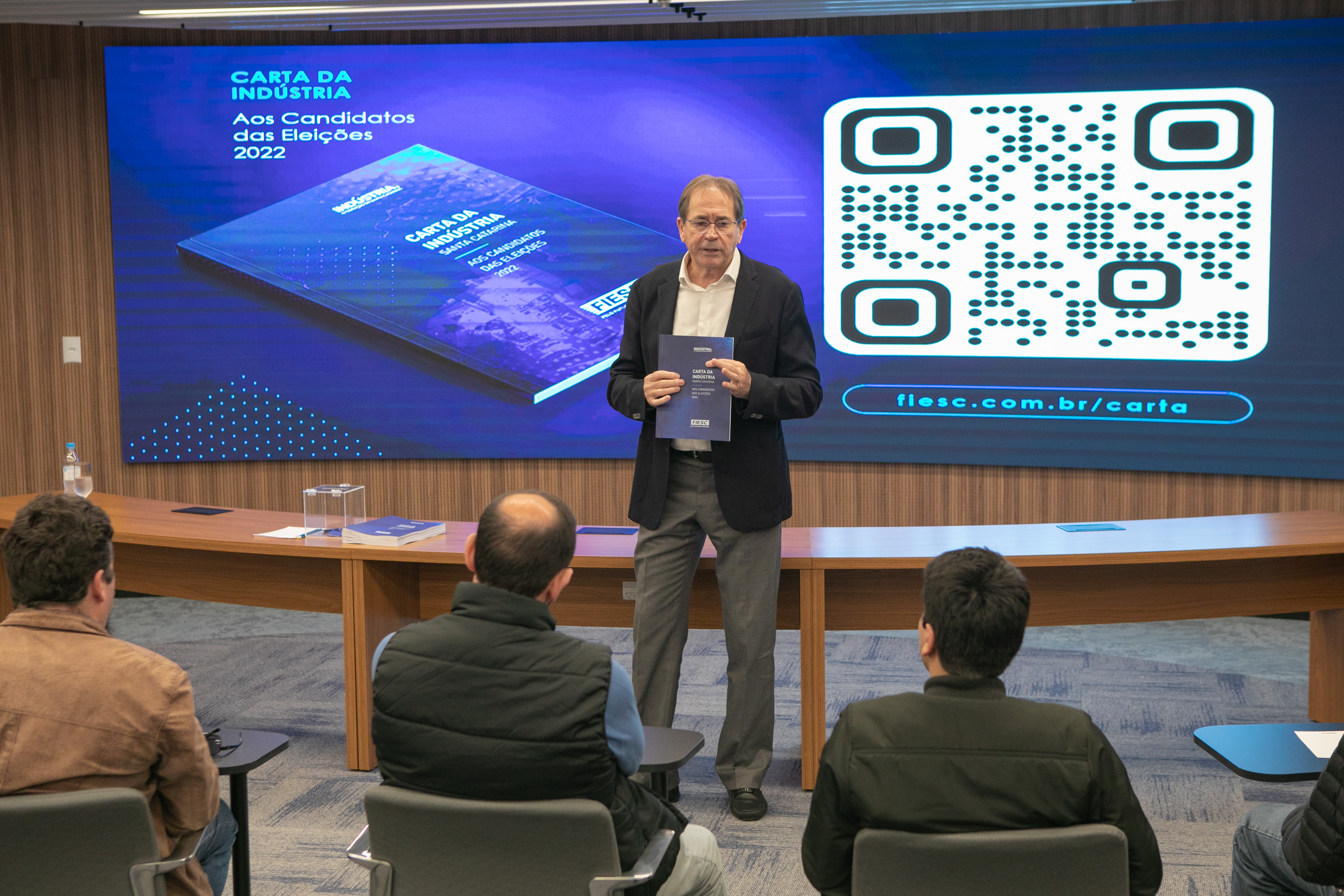 Florianópolis, 5.9.2022 – A Federação das Indústrias (FIESC) lançou nesta segunda-feira (5) a edição 2022 da Carta da Indústria, que traz as propostas do setor para o Legislativo e o Executivo, tanto em âmbito estadual, quanto federal. O documento pode ser acessado em fiesc.com.br/carta e foi apresentado aos assessores dos candidatos ao Governo de Santa Catarina que participarão do Diálogo da Indústria, que vai ocorrer dia 22 de setembro na sede da FIESC, às 9h30. O encontro tem presença confirmada dos sete candidatos cujos partidos possuem representação na Assembleia Legislativa de Santa Catarina: Carlos Moisés (Republicanos), Décio Lima (PT), Esperidião Amin (PP), Gean Loureiro (União Brasil), Jorge Boeira (PDT), Jorginho Mello (PL), Odair Tramontin (Novo).