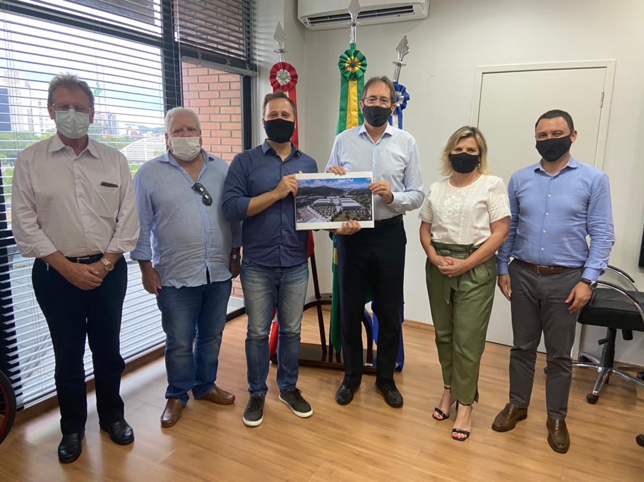 Florianópolis, 1°.2.2021 - O presidente da FIESC, Mario Cezar de Aguiar, apresentou ao prefeito de Joinville, Adriano Silva, o projeto de revitalização do Moinho de Joinville. A revitalização será realizada pelo SESI, entidade da FIESC, e prevê a implantação de um complexo educacional (do ensino básico ao superior e capacitação empresarial) e de inovação, além do Museu da Indústria. A área tem 53 mil metros quadrados, com 19 mil metros quadrados de área construída. O encontro foi realizado nesta segunda-feira, dia 1°, em Joinville, e contou com a participação do 1° vice-presidente da Federação, Evair Oenning, do vice-presidente para assuntos estratégicos, Ney Osvaldo Silva Filho, do diretor regional do SENAI/SC, Fabrizio Machado Pereira, além da vice-prefeita, Rejane Gambin.