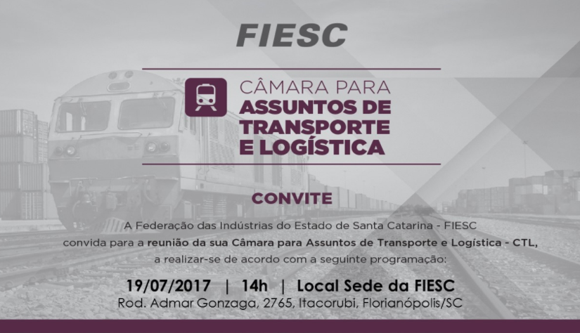 Os interessados em participar devem confirmar presença aqui, até o dia 17 de julho, por meio de inscrição online. Mais informações pelo telefone 48 3231-4724 ou pelo email câmara.logistica@fiesc.com.br .