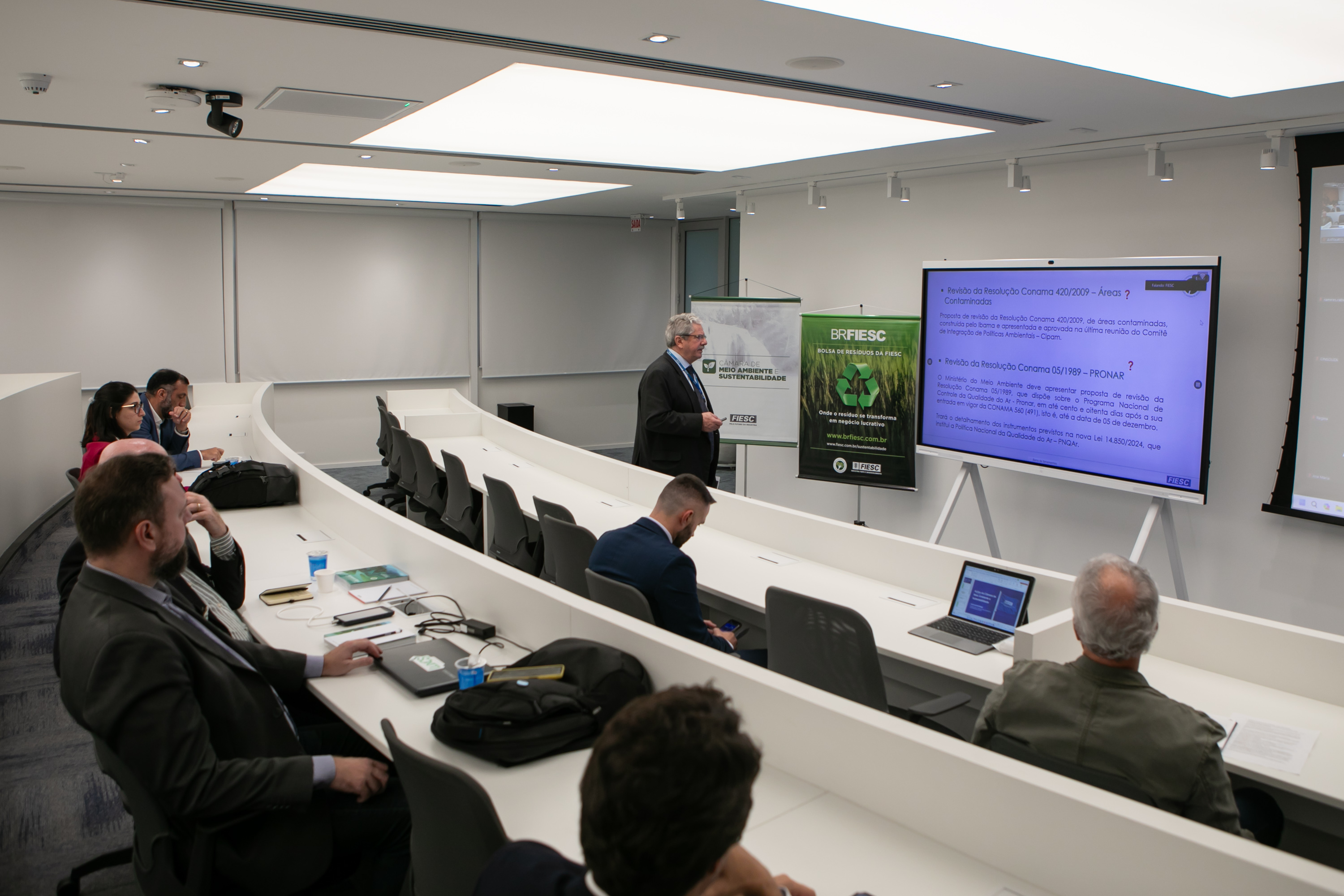 Florianópolis, 23.08.24 - A Câmara de Meio Ambiente e Sustentabilidade da Federação das Indústrias de SC (FIESC) recebeu nesta sexta-feira, 23, a presidente da câmara técnica de Licenciamento Ambiental do Conselho Estadual do Meio Ambiente (CONSEMA), Schirlene Chegatti, para detalhar as resoluções 250 e 251 do órgão, que tratam de licenças ambientais em Santa Catarina.
