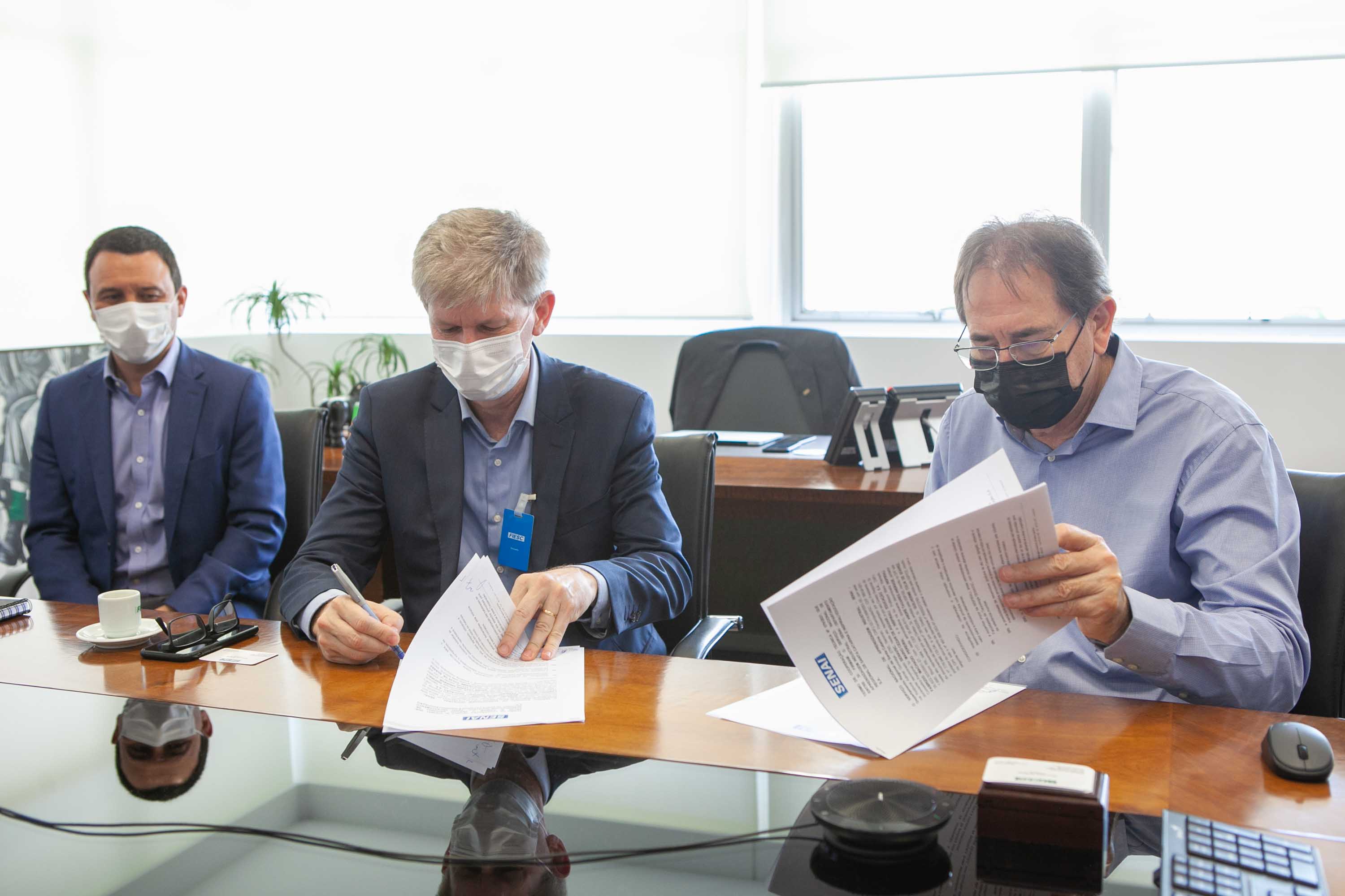 Florianópolis, 01.12.2021 - Santa Catarina contará, a partir de abril de 2022, com um curso Master Business Innovation (MBI) voltado à geração de conhecimento e tecnologia para a cadeia de valor da saúde. O curso será lançado por meio de parcerias da Federação das Indústrias de Santa Catarina (FIESC) – e suas entidades SESI e SENAI –, no âmbito da Escola de Negócios, com outras sete entidades. Nesta quarta (01) foi assinado um termo de cooperação com o grupo Ânima, controlador, entre outras instituições de ensino, da Unisul e da Unisociesc.