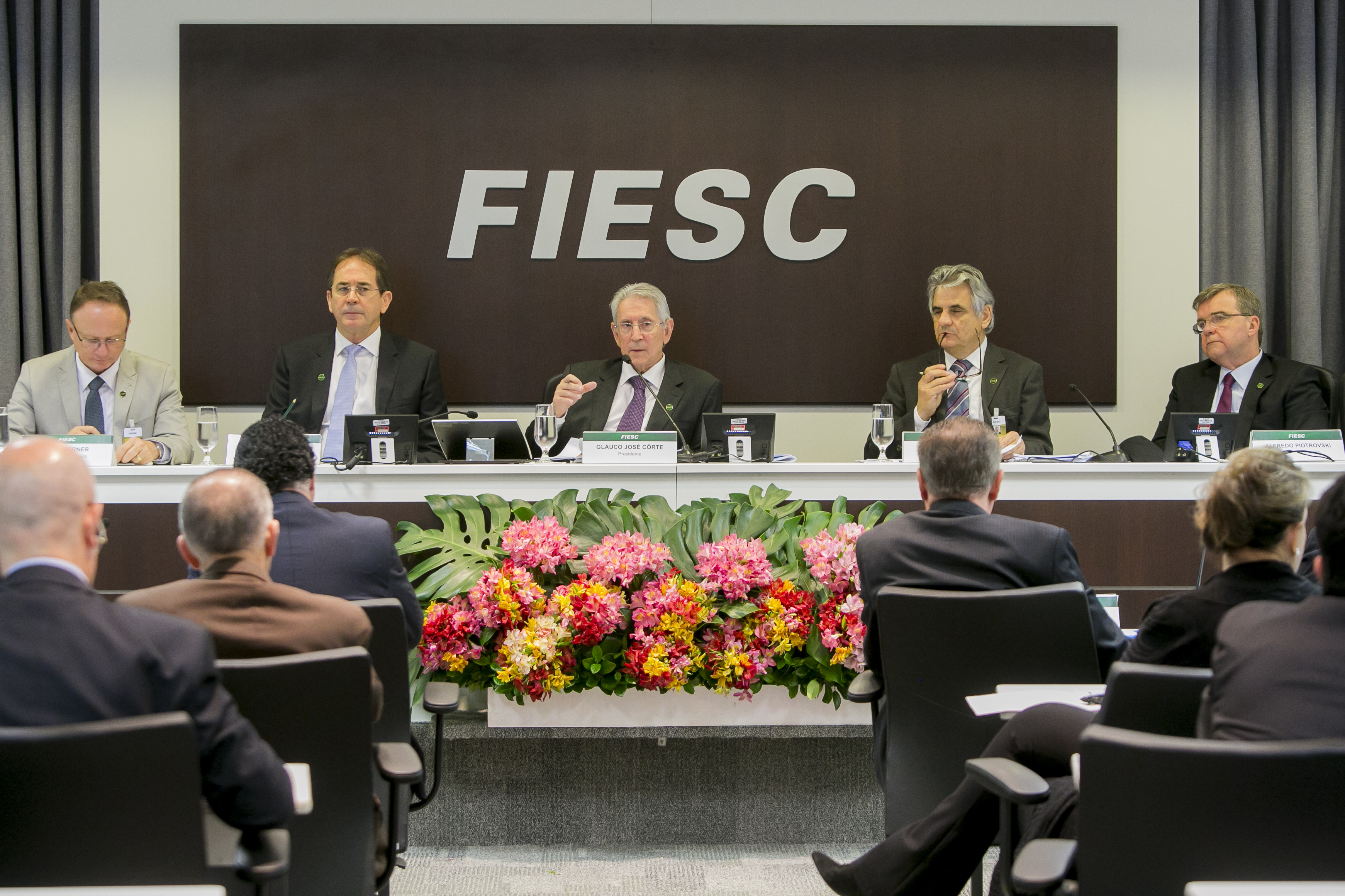 Florianópolis, 21.8.2015 – A Federação das Indústrias de Santa Catarina (FIESC) apresentou a empresários do setor as medidas que a entidade vem tomando em conjunto com a Celesc para corrigir distorções que elevam os custos das tarifas de energia elétrica para a indústria do Estado. Só em 2015 o insumo já acumulada alta de 34,87%, lembrou o presidente da Federação, Glauco José Côrte. A entidade tem mobilizado o Ministério de Minas e Energia, Aneel, Fórum Parlamentar Catarinense e o governo do Estado para buscar tarifas mais competitivas. O tema foi discutido na reunião de diretoria da FIESC, nesta sexta-feira (21), em Florianópolis.