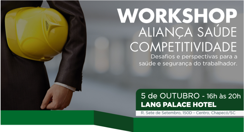 Florianópolis, 03.10.2016 – A FIESC, por meio do SESI e com o apoio do IEL, inicia neste mês uma série de workshops pelo Estado para discutir saúde e segurança do trabalhador. Serão feitos dezesseis encontros regionais que objetivam consolidar e priorizar as necessidades das indústrias relacionadas ao tema. O primeiro encontro será realizado em Chapecó, no dia 5 de outubro. A ação é promovida por meio da Aliança Saúde Competitividade.