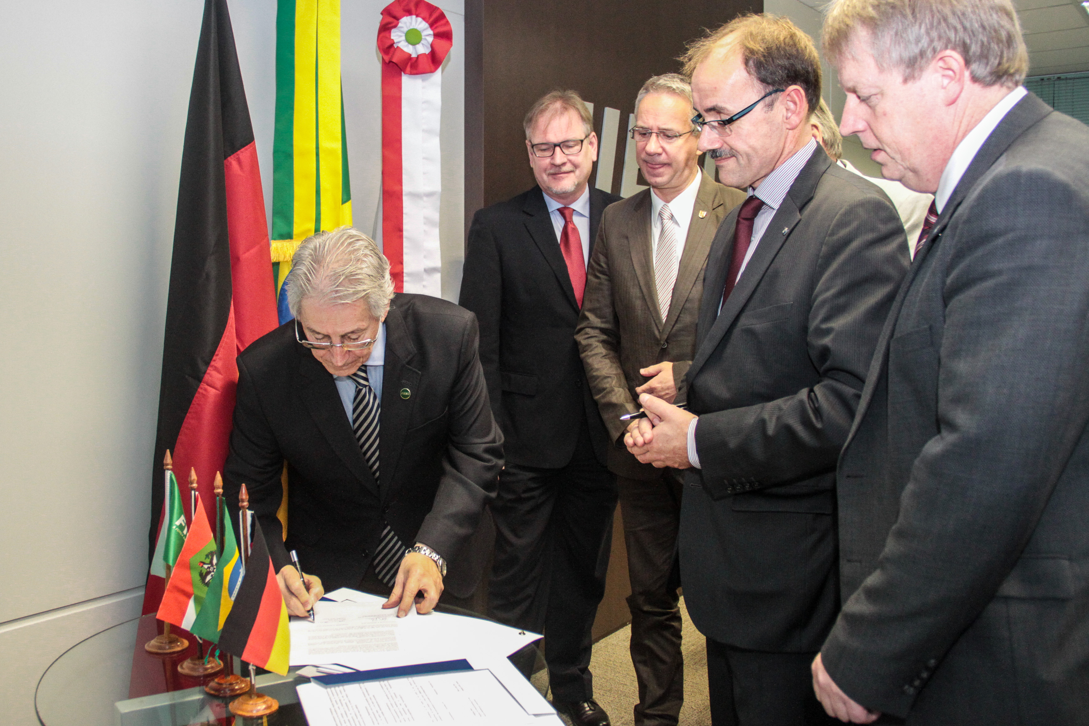 Florianópolis, 4.11.2014 - A Federação das Indústrias de Santa Catarina (FIESC) e representantes do Estado alemão de Mecklenburg-Vorpommern assinaram nesta terça-feira (4) acordo de cooperação. O objetivo é fomentar ações nos setores de aproveitamento de resíduos, biogás, construção civil, logística, logística reversa e nas indústrias marítima, farmacêutica e alimentícia.