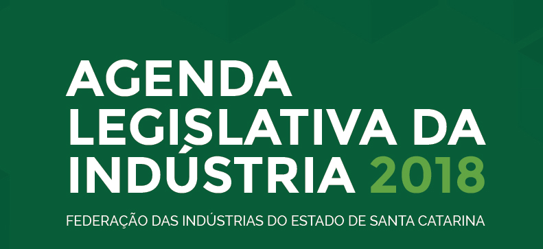 Florianópolis, 27.3.2018 - A Federação das Indústrias de Santa Catarina (FIESC) lança a Agenda Legislativa da Indústria, nesta quarta-feira (28), às 15h30, na Assembleia Legislativa (ALESC), em Florianópolis. O documento está na 10ª edição e reúne o posicionamento da entidade sobre os projetos de interesse da indústria que tramitam no legislativo estadual. São propostas ligadas a áreas como administração e políticas públicas, meio ambiente, econômico e tributário, institucional e infraestrutura.
