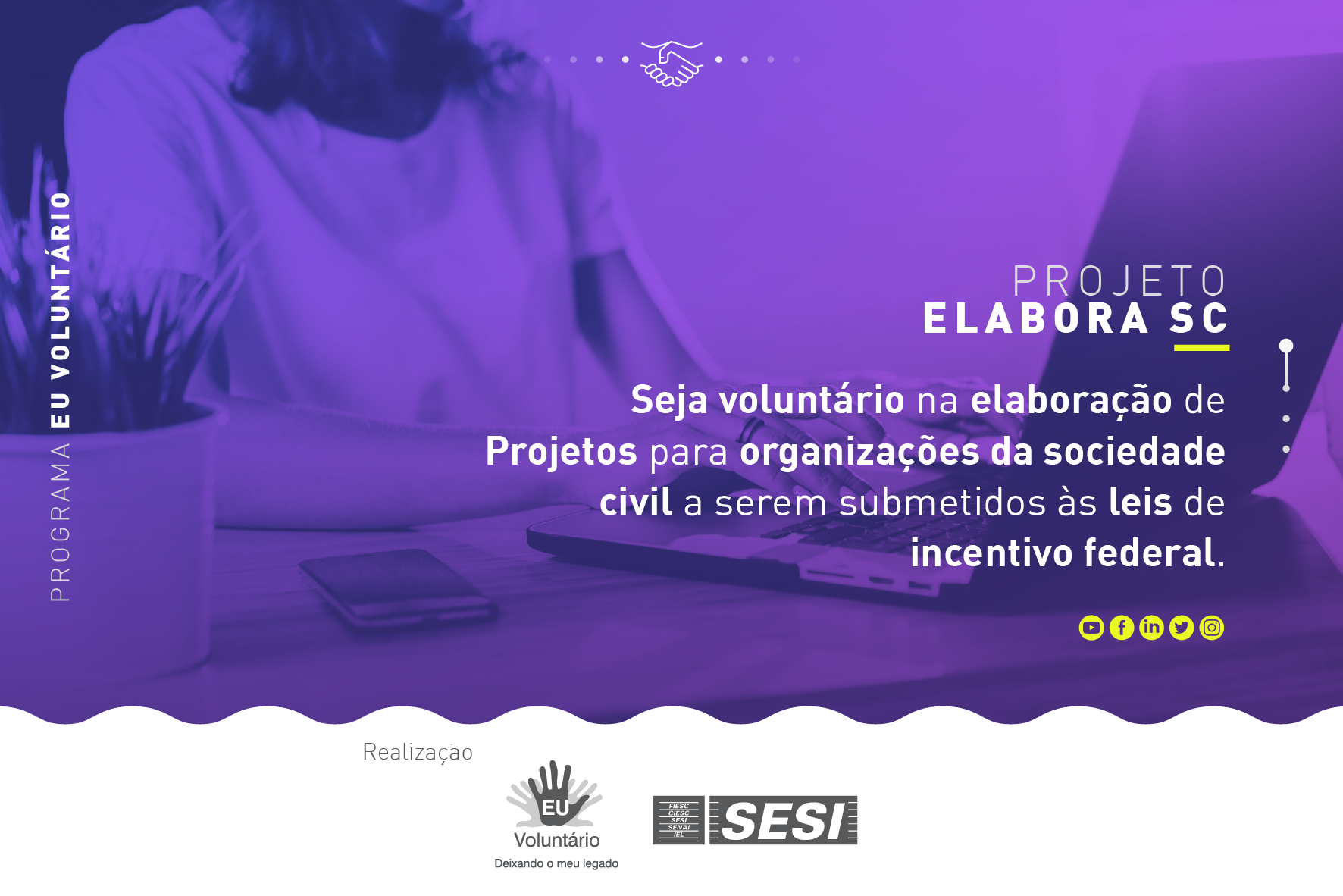 Florianópolis, 18.11.2020 – Se você tem experiência com a elaboração de projetos e está disposto a ajudar organizações do terceiro setor a conseguir recursos utilizando mecanismos de incentivo fiscal, então pode se candidatar a ser um voluntário no projeto Elabora SC. A iniciativa lançada este mês pelas entidades SESI e SENAI, que integram a Federação das Indústrias (FIESC), quer mobilizar pessoas com experiência na elaboração de projetos a ajudar instituições que buscam aportes financeiros por meio das leis de incentivo fiscal.