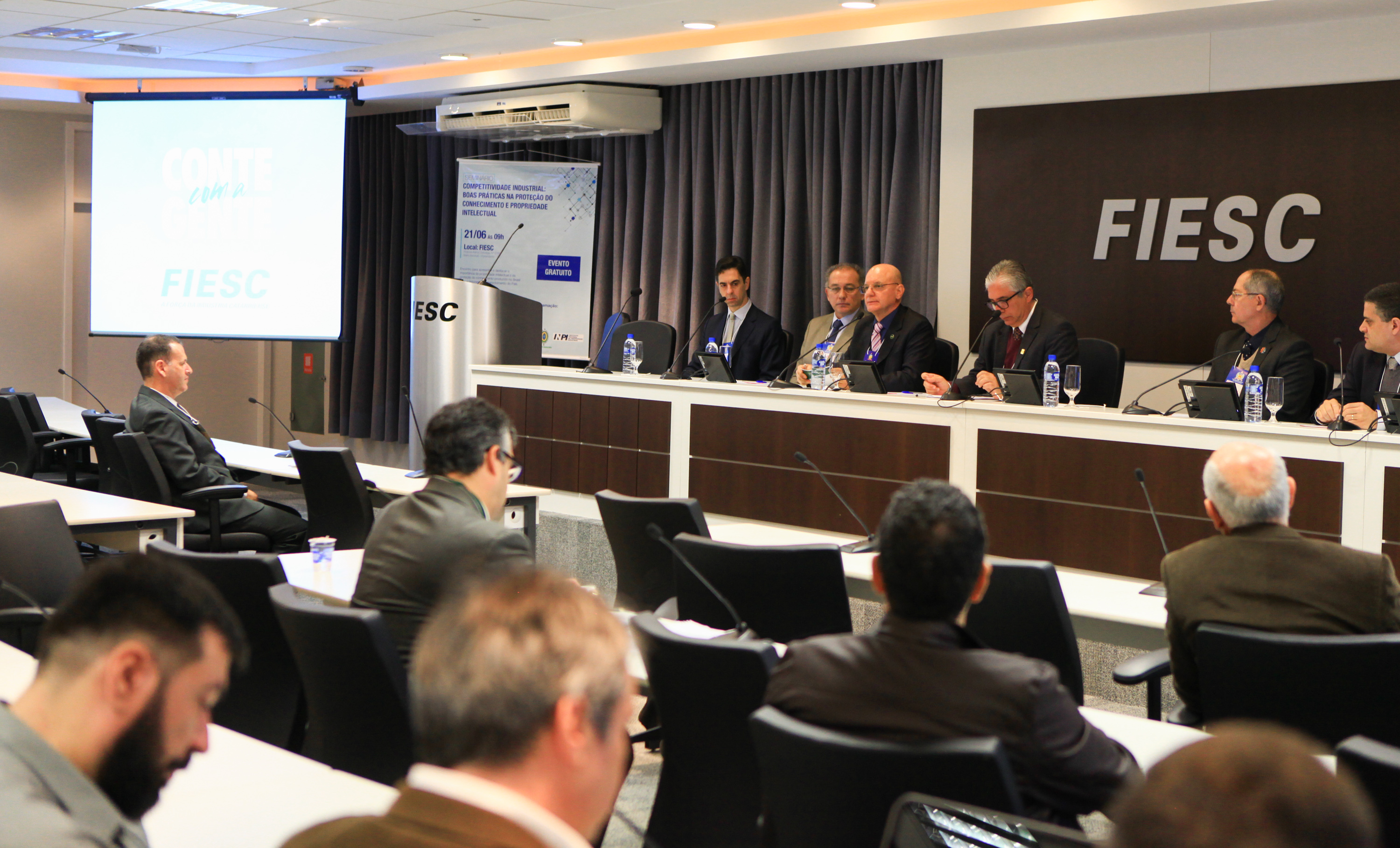 Florianópolis, 21.06.2017 – A FIESC, em parceria com a Universidade Federal de Santa Catarina (UFSC), promoveu nesta quarta-feira (21) o seminário “Competitividade industrial: boas práticas na proteção do conhecimento e propriedade intelectual”. O encontro, realizado na sede da Federação, apresentou e destacou a importância da propriedade intelectual e da proteção do conhecimento produzido no Brasil para a segurança e desenvolvimento do País. O evento teve apoio da Agência Brasileira de Inteligência (ABIN), Instituto Nacional da Propriedade Industrial (INPI) e Exército Brasileiro.