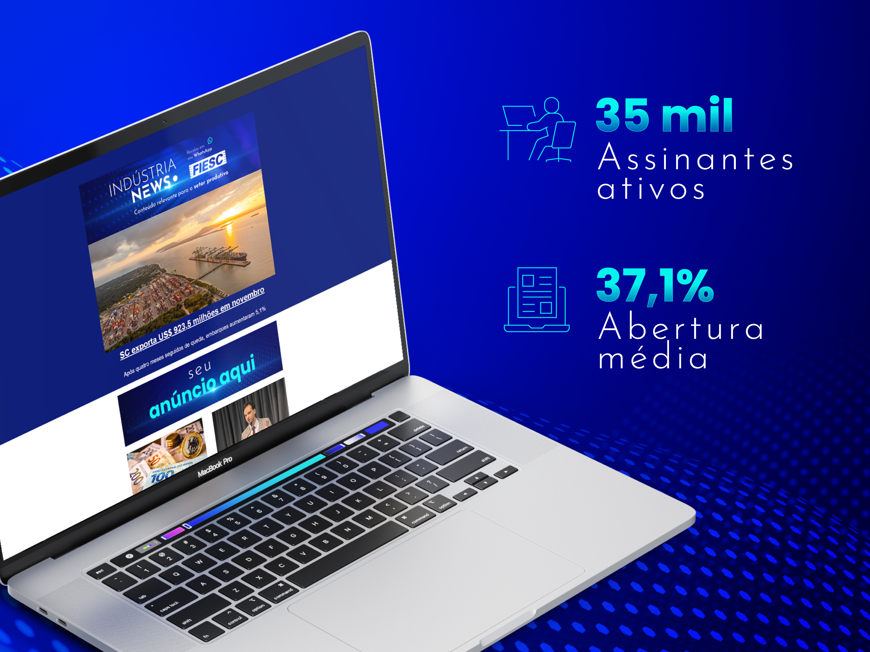 Florianópolis, 28.02.2024 - No mês em que supera os 35 mil assinantes ativos, a newsletter Indústria News, produzida diariamente pela FIESC, inicia a comercialização de espaços publicitários. O objetivo é facilitar a comunicação de empresas e entidades que querem atingir um público qualificado, formado por gestores e industriais de todo o estado.