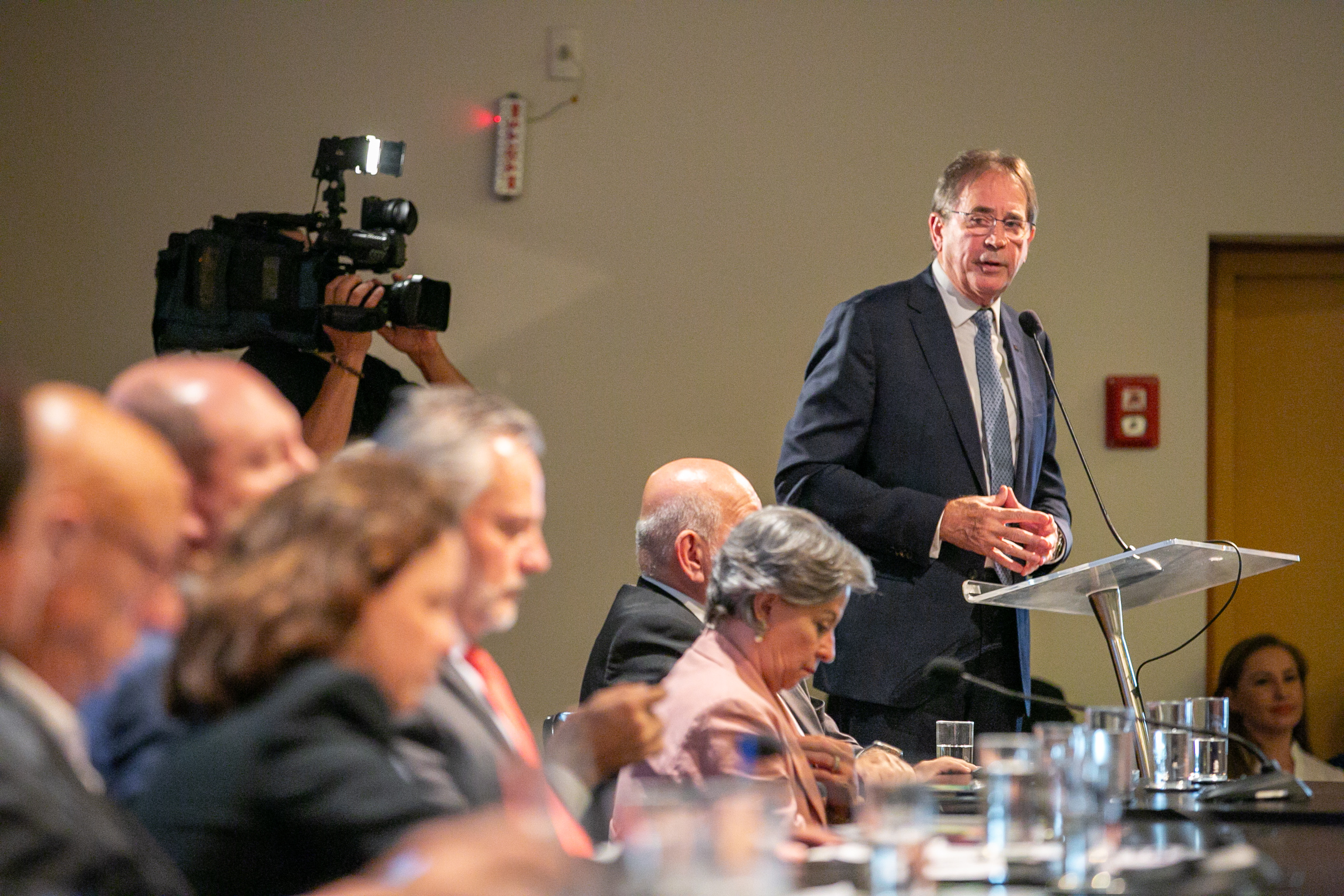 Florianópolis, 29.02.2024 - Santa Catarina tem plenas condições de ultrapassar São Paulo como o estado mais competitivo do país se a infraestrutura for tratada como prioridade. Mas a falta de investimentos no setor pode levar o estado a perder posições, com reflexos negativos no desenvolvimento e na geração de empregos. O alerta é do presidente da Federação das Indústrias de SC (FIESC), Mario Cezar de Aguiar, e foi feito durante evento organizado pela Frente Parlamentar Mista de Logística e Infraestrutura do Congresso Nacional (FRENLOGI) nesta quinta-feira (29).