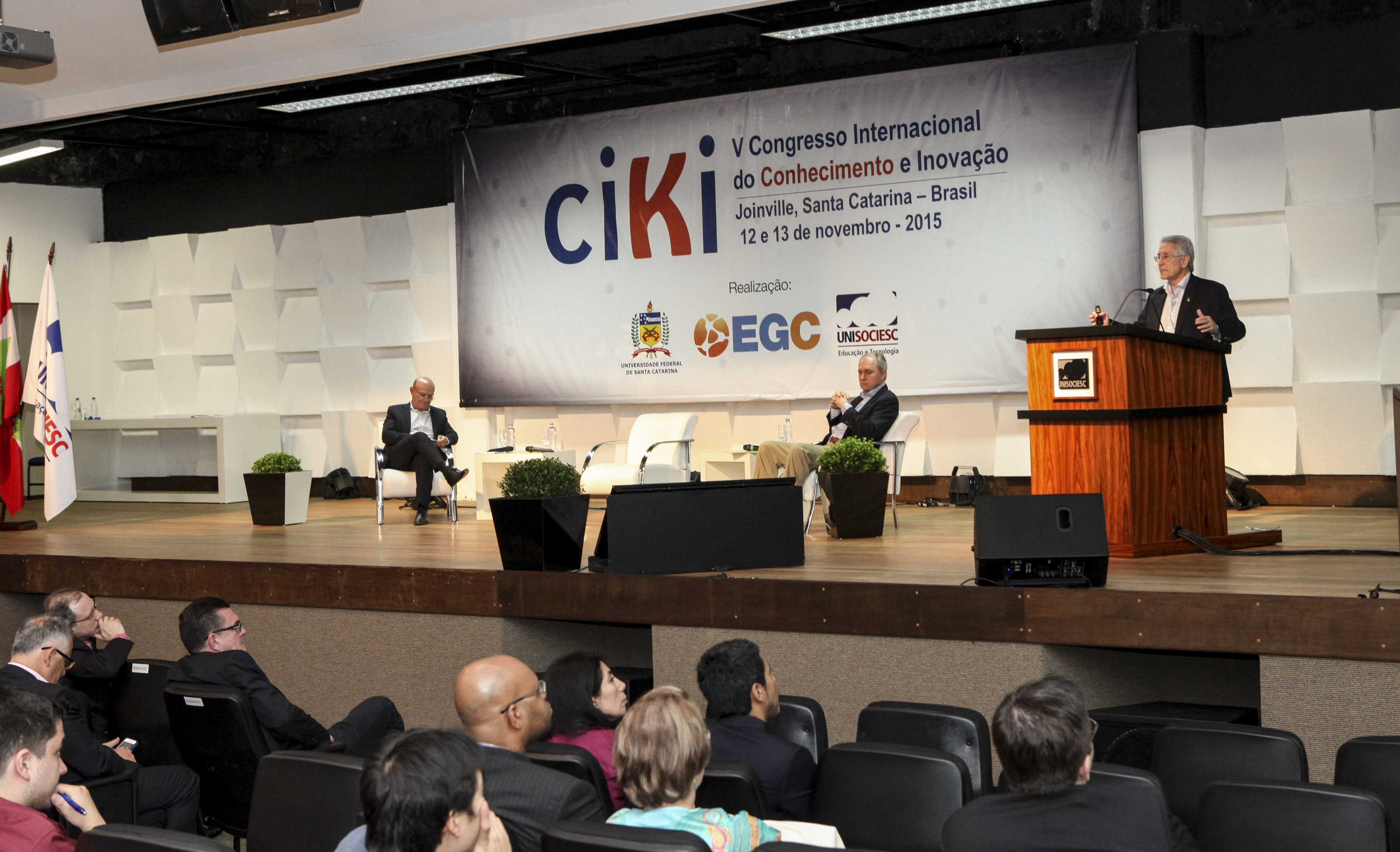 Joinville – 13.11.2015 – O presidente da Federação das Indústrias de Santa Catarina (FIESC), Glauco José Côrte, afirmou que a “inovação é condição imperativa para aumentar a competitividade, o acesso a mercados e a produtividade”. Ele proferiu palestra no 5º Congresso Internacional de Conhecimento e Inovação, promovido pela Sociesc, em Joinville, nesta sexta-feira (13). Na opinião dele, inovar exige agenda convergente, atuação em rede e engajamento de todos os parceiros.
