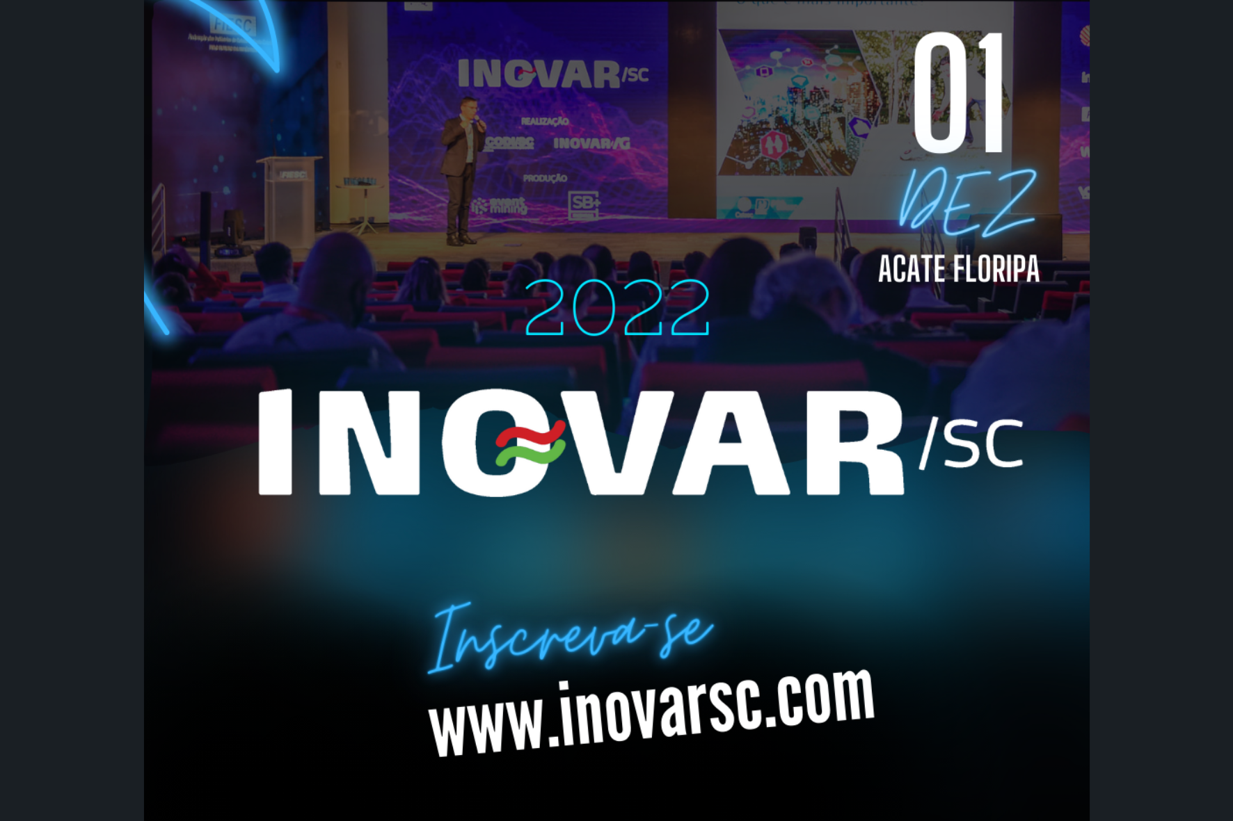 Esta nona edição do Inovar SC é co-realizada pela Associação Empresarial de Comunicação Digital de Santa Catarina SC – AECODI/SC e INOVAR AG com apoio institucional da Federação das Indústrias do Estado de SC (FIESC), Associação Catarinense das Empresas de Tecnologia (ACATE), SEBRAE SC, Engie, Unisul, Sênior Sistemas, Unesc, Banco Regional de Desenvolvimento do Extremo Sul (BRDE), Conselho Regional de Administração - CRA/SC, SB+Eventos e apoio de mídia da Urban TV e Portal da Ilha.